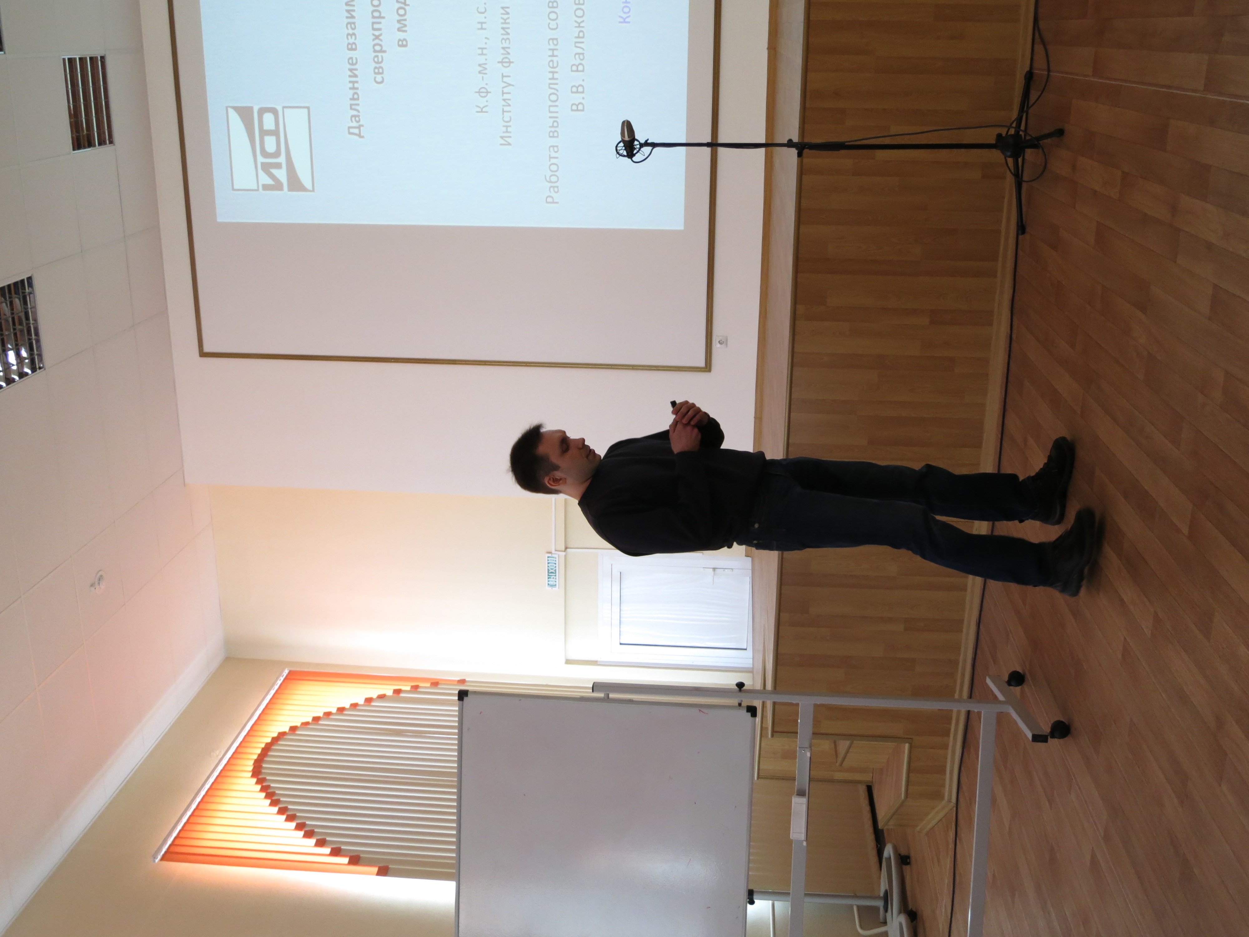 Максим Коровушкин с докладом "Дальние взаимодействия в проблеме механизма сверхпроводимости Кона-Латтинжера в модели Шубина-Вонсовского"