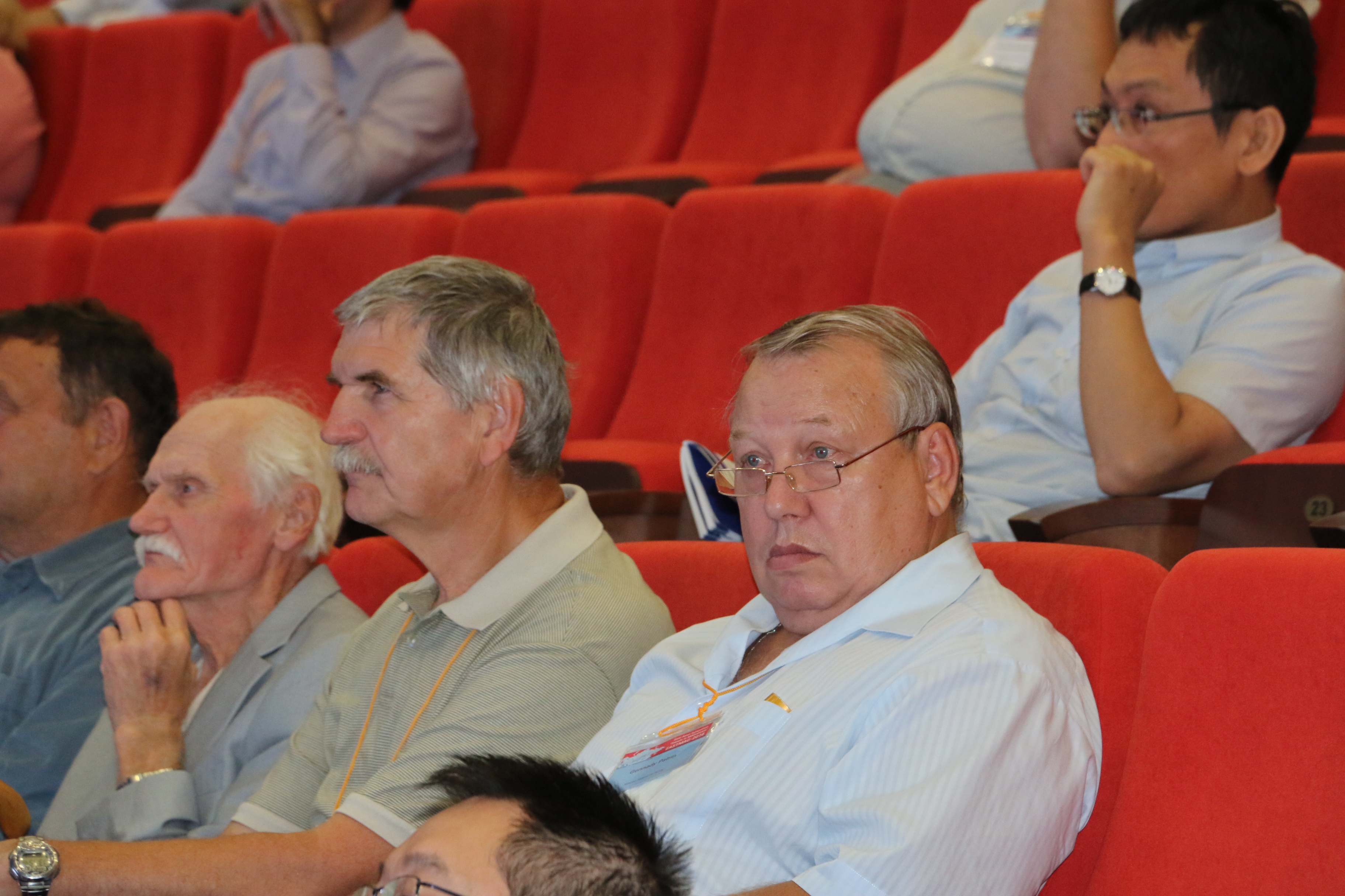 15 августа 2016 года. На открытии Евро-Азиатского симпозиума "Прогресс в магнетизме" (EASTMAG-2016) в конгресс-холле Сибирского федерального университета (СФУ) Красноярска. Слева направо:Турпанов И.А., Горнаков В.С., Патрин Г.С., заведующий лабораторией магнитодинамики Института физики им. Л.В. Киренского Сибирского отделения Российской академии наук (ИФ СО РАН), председатель локального Организационного комитета симпозиума.