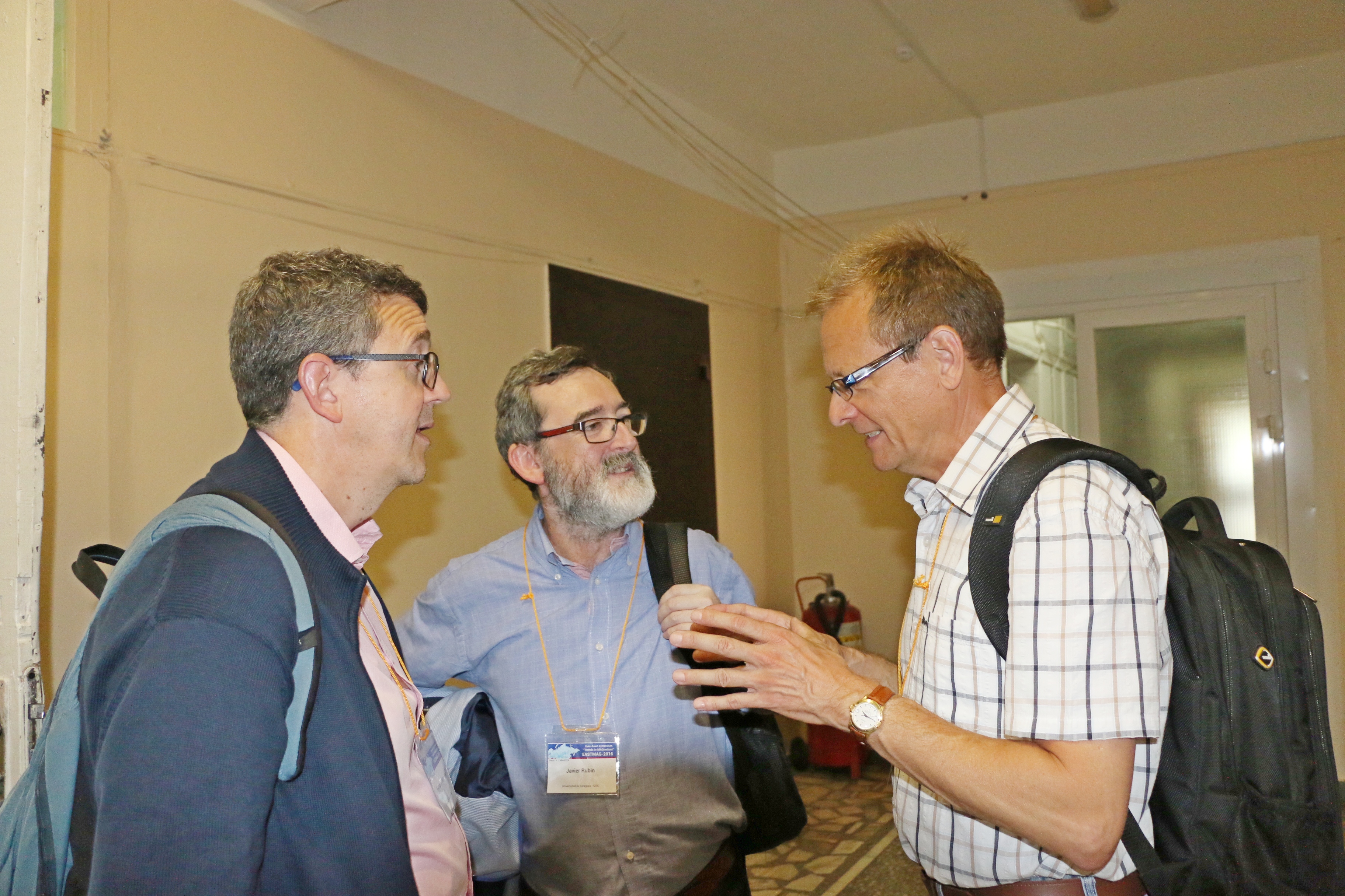Участники симпозиума EASTMAG-2016, слева направо: Фернандо Бартоломе, Хавьер Рубин и Даниель Бюрглер (Юлихский исследовательский центр, Германия) на экскурсии в Институте физики Сибирского отделения Российской академии наук (ИФ СО РАН), Красноярск.