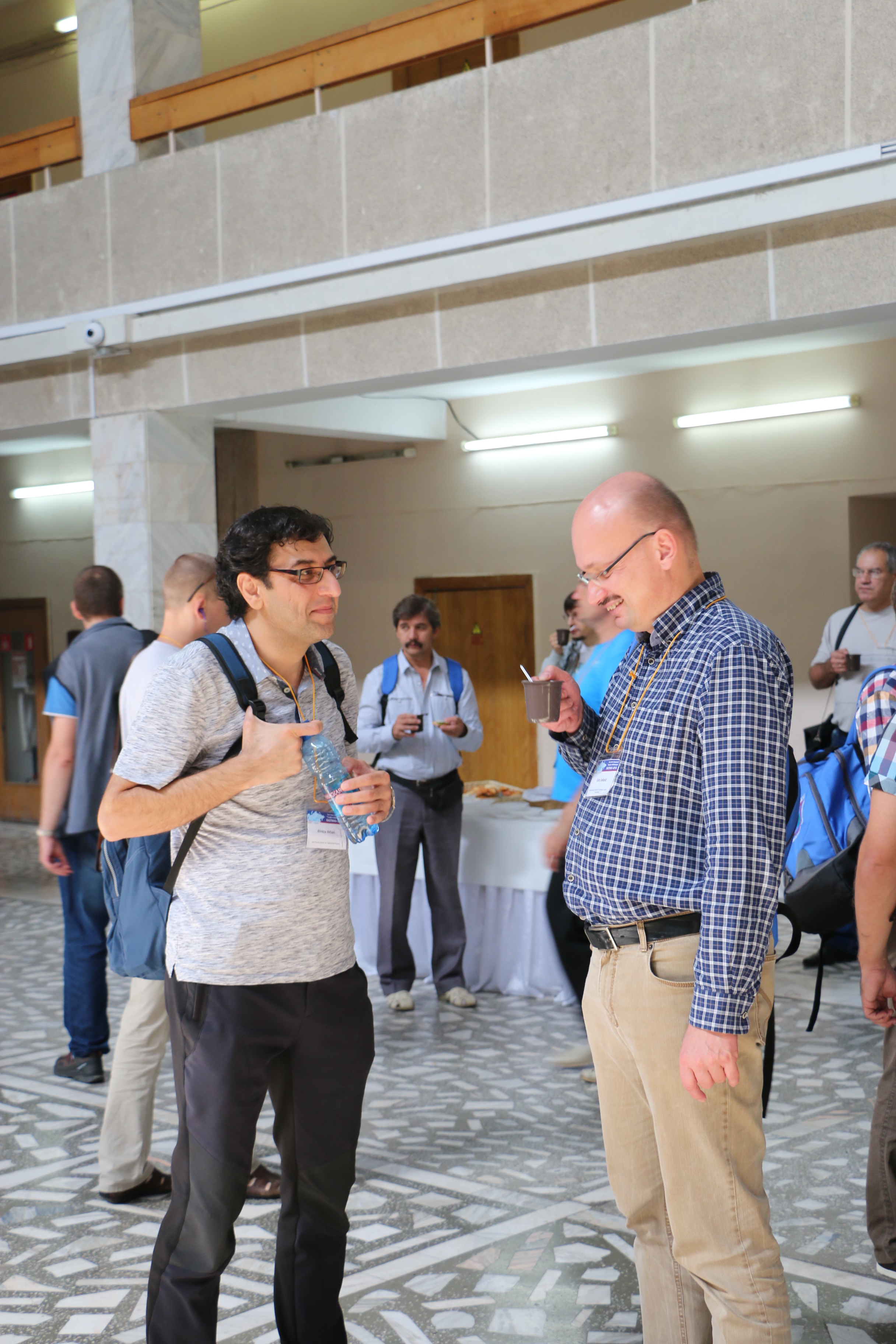 На переднем плане - участники симпозиума EASTMAG-2016 в Красноярске Сейед Али Нассери (Институт научного обмена, Турин, Италия) (слева) и Гёц Зайбольд (Бранденбургский технический университет, Германия).