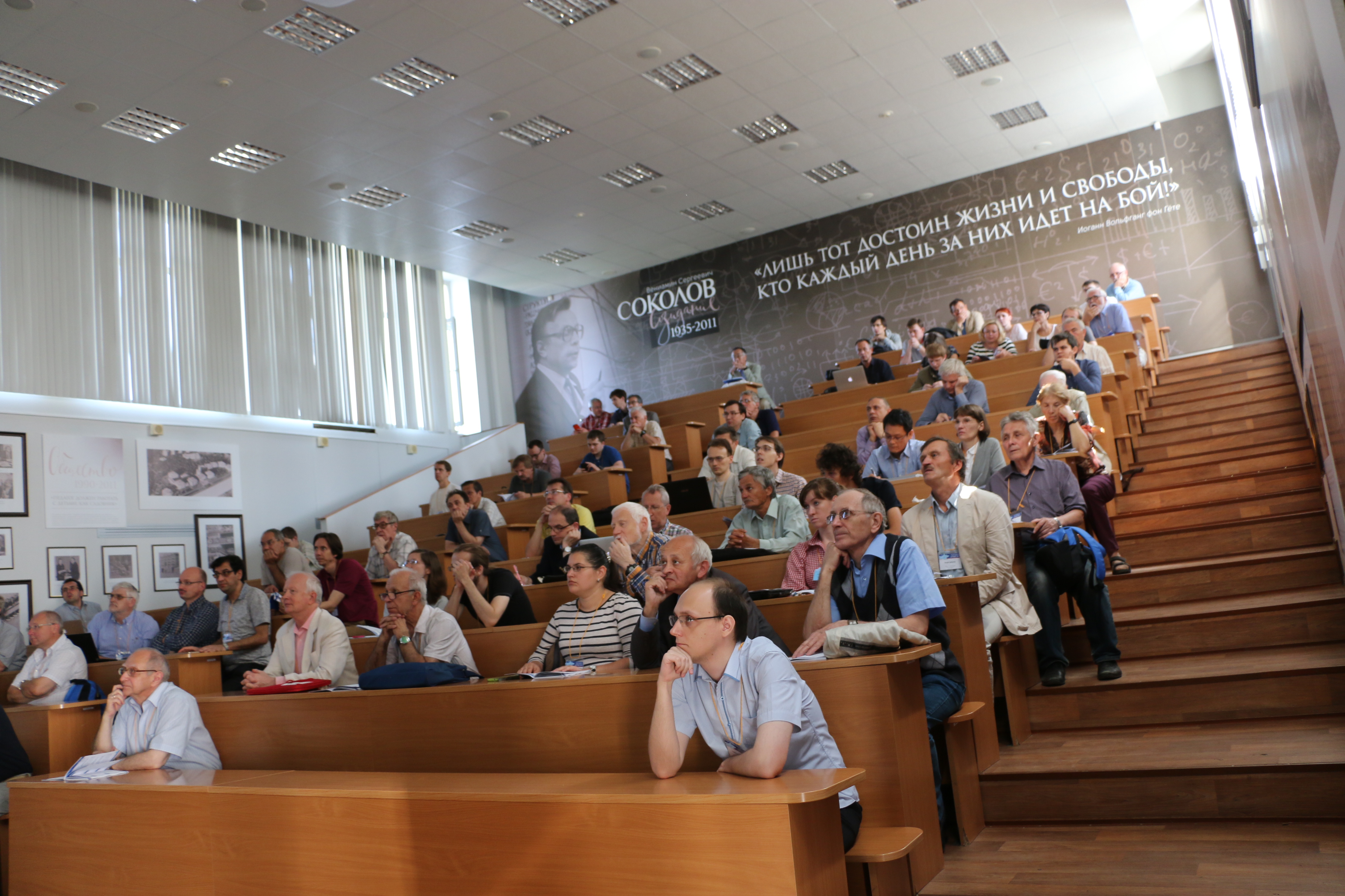 15-19 августа 2016 года в Красноярске состоялся VI Евро-Азиатский симпозиум "Прогресс в магнетизме" (EASTMAG-2016), организованный и проведенный Институтом физики им. Л.В. Киренского Сибирского отделения Российской академии наук (ИФ СО РАН). Заседания симпозиума проходили в конгресс-холле Сибирского федерального университета (СФУ). На снимке - одно из заседаний устных докладов. В третьем ряду, крайний справа, Аплеснин С.С., ведущий научный сотрудник лаборатории теоретической физики СО РАН.