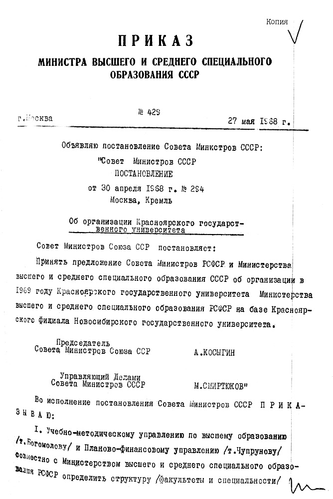 Вы здесь: Главная / Документы / С этого начинался Сибирский федеральный университет