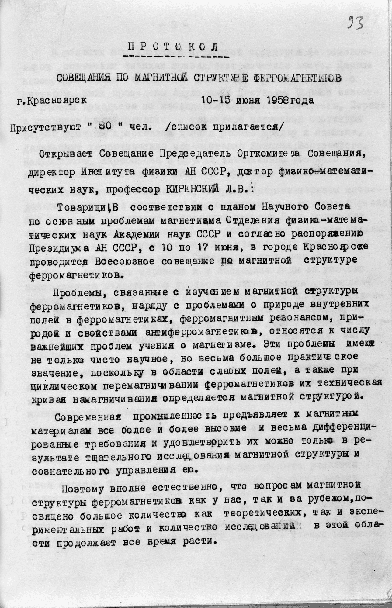 Протокол совещания по магнитной структуре ферромагнетиков