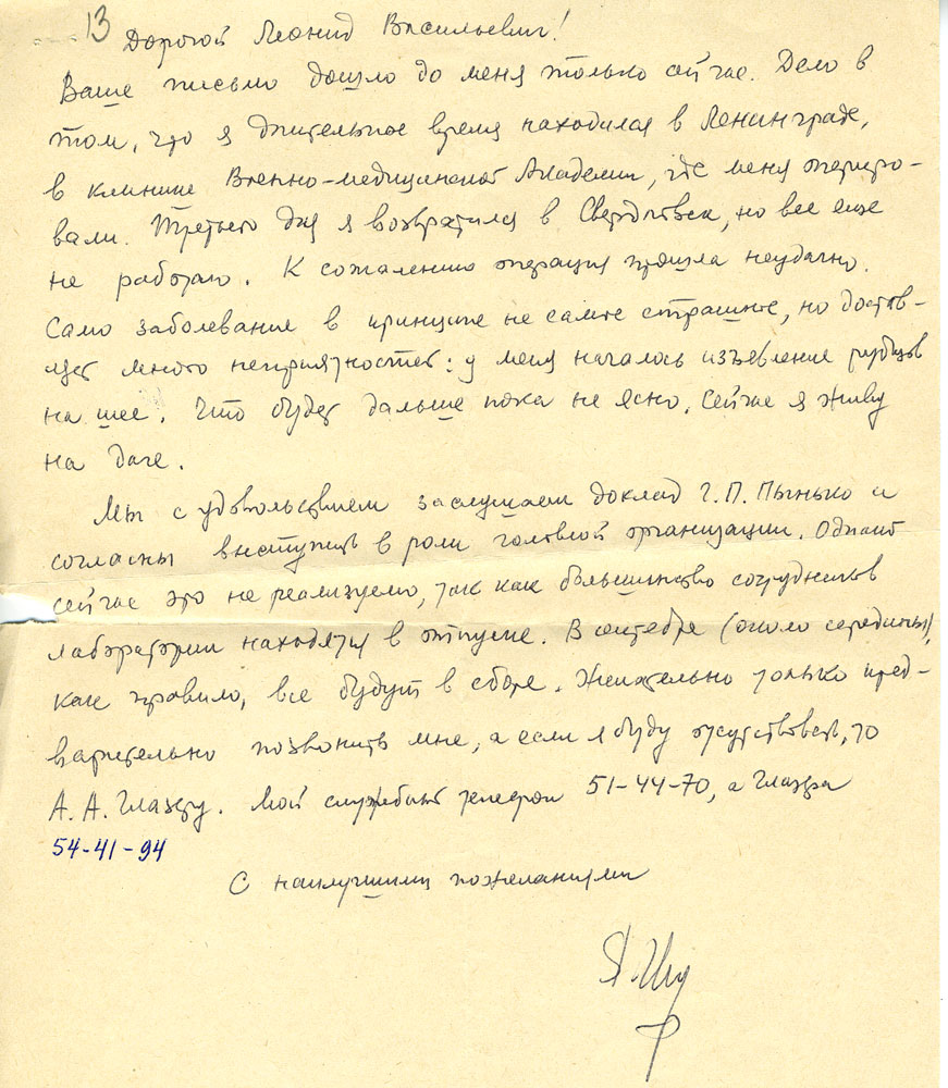 Вы здесь: Главная / Документы / Переписка Л. В. Киренского / Письма к Л. В. Киренскому / Яков Шебселевич Шур, советский физик, член-корреспондент Академии наук СССР, лауреат Государственной премии СССР.