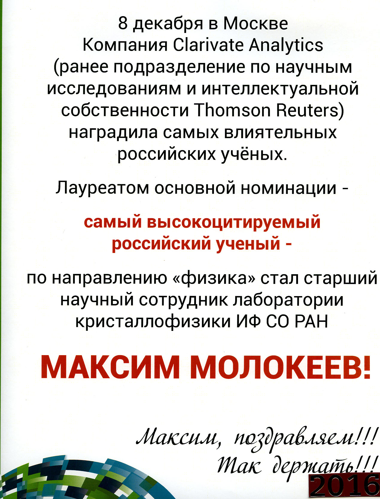 Вы здесь: Главная / Документы / Поздравление Молокееву Максиму