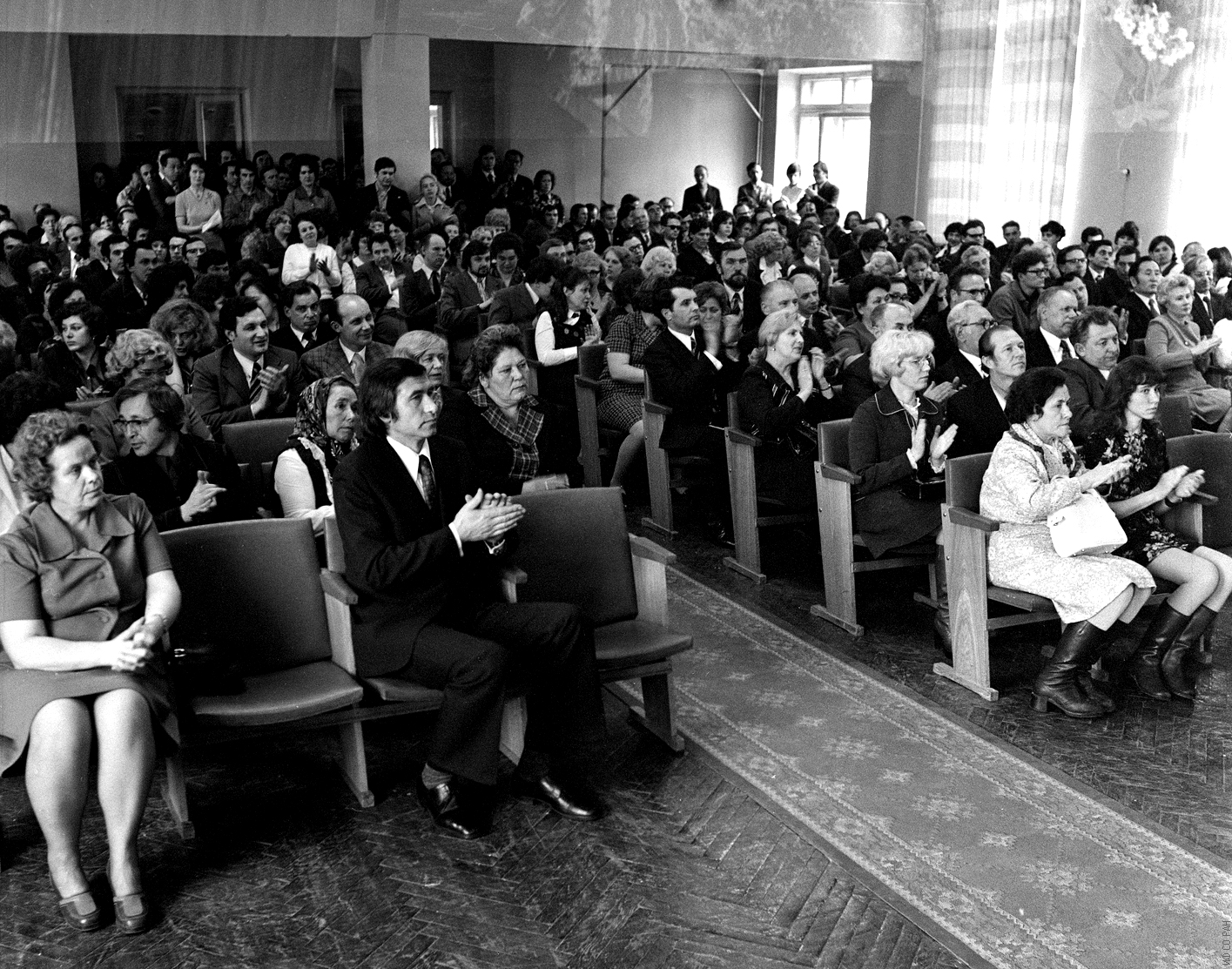 Конференц-зал Института физики. Торжественное заседание по поводу 25-летия института, октябрь 1981 год.