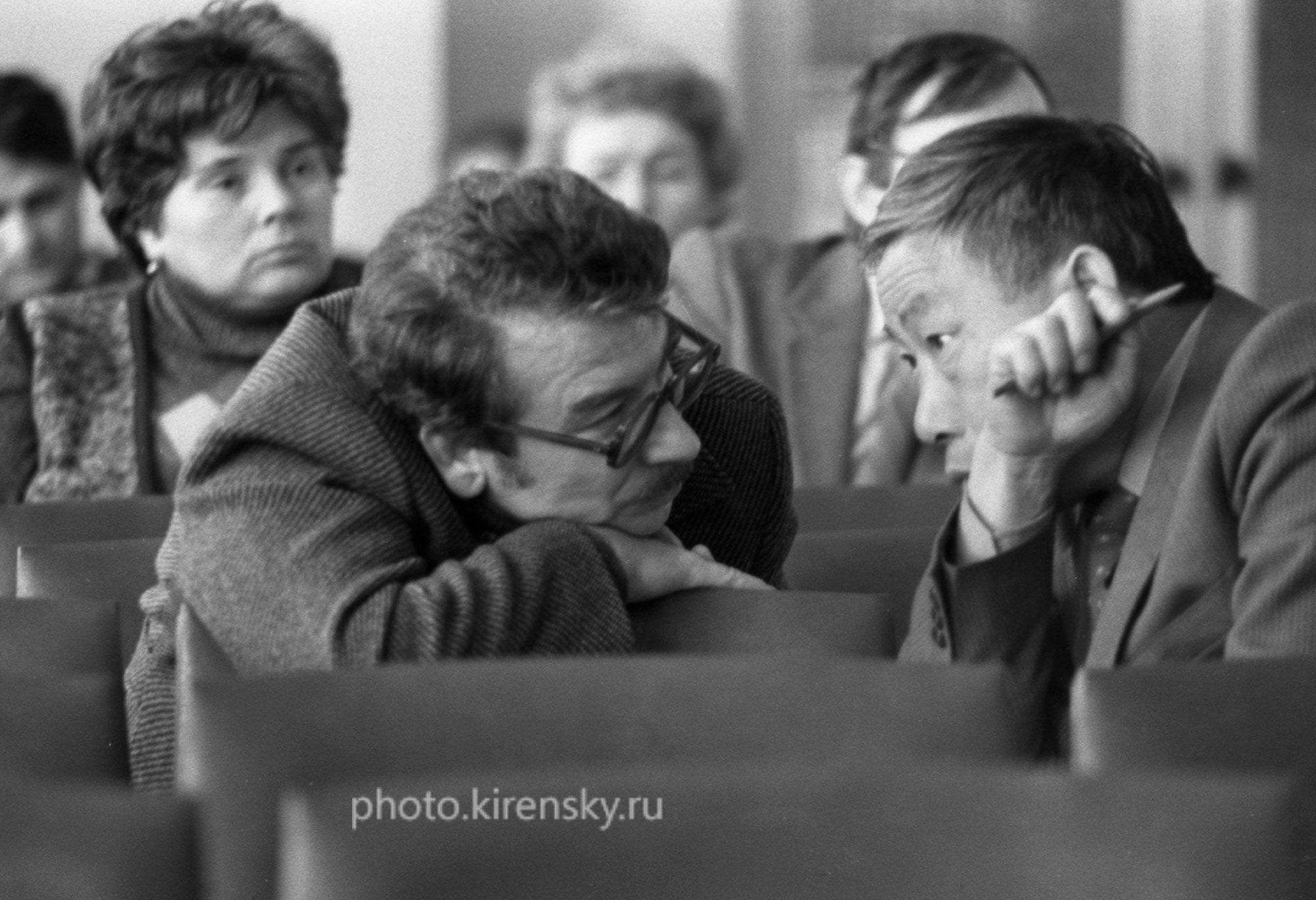 1992 год. На ученом Совете Института физики им. Л.В. Киренского Сибирского отделения Российской академии наук (ИФ СО РАН). На переднем плане: Фролов Г.И, заведующий лабораторией физики магнитных пленок (слева) и Ким П. Д., заведующий лабораторией магнитодинамики . Во втором ряду слева Федосеева Н.В., старший научный сотрудник лаборатории резонансных свойств магнитоупорядоченных веществ. Красноярск.