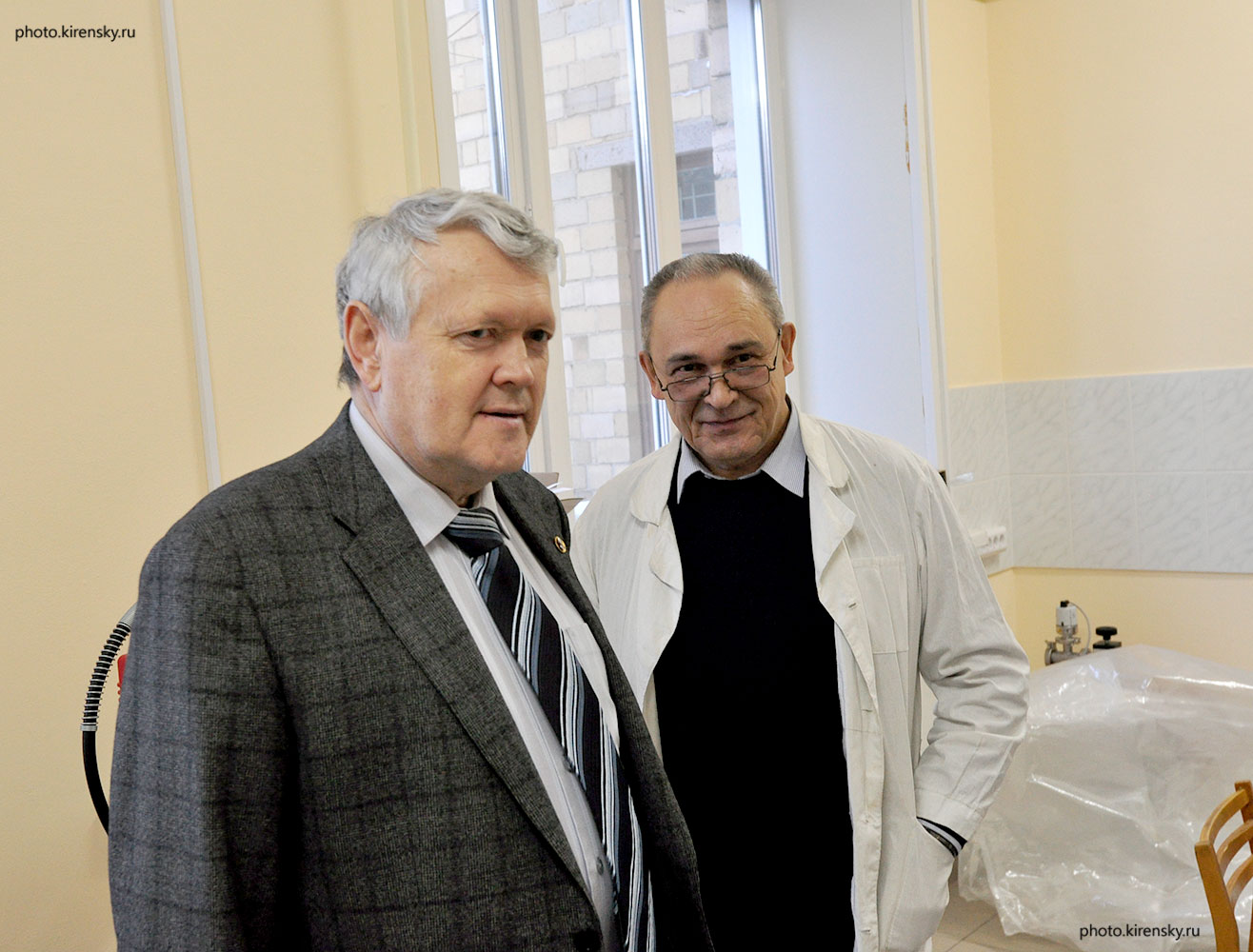 Слева направо: председатель Сибирского отделения РАН Асеев А.Л. и старший научный сотрудник лаборатории сильных магнитных полей Института физики им. Л.В. Киренского Сибирского отделения РАН Петров М.И. в лаборатории сильных магнитных полей. Снимок 2012 года. Красноярск.