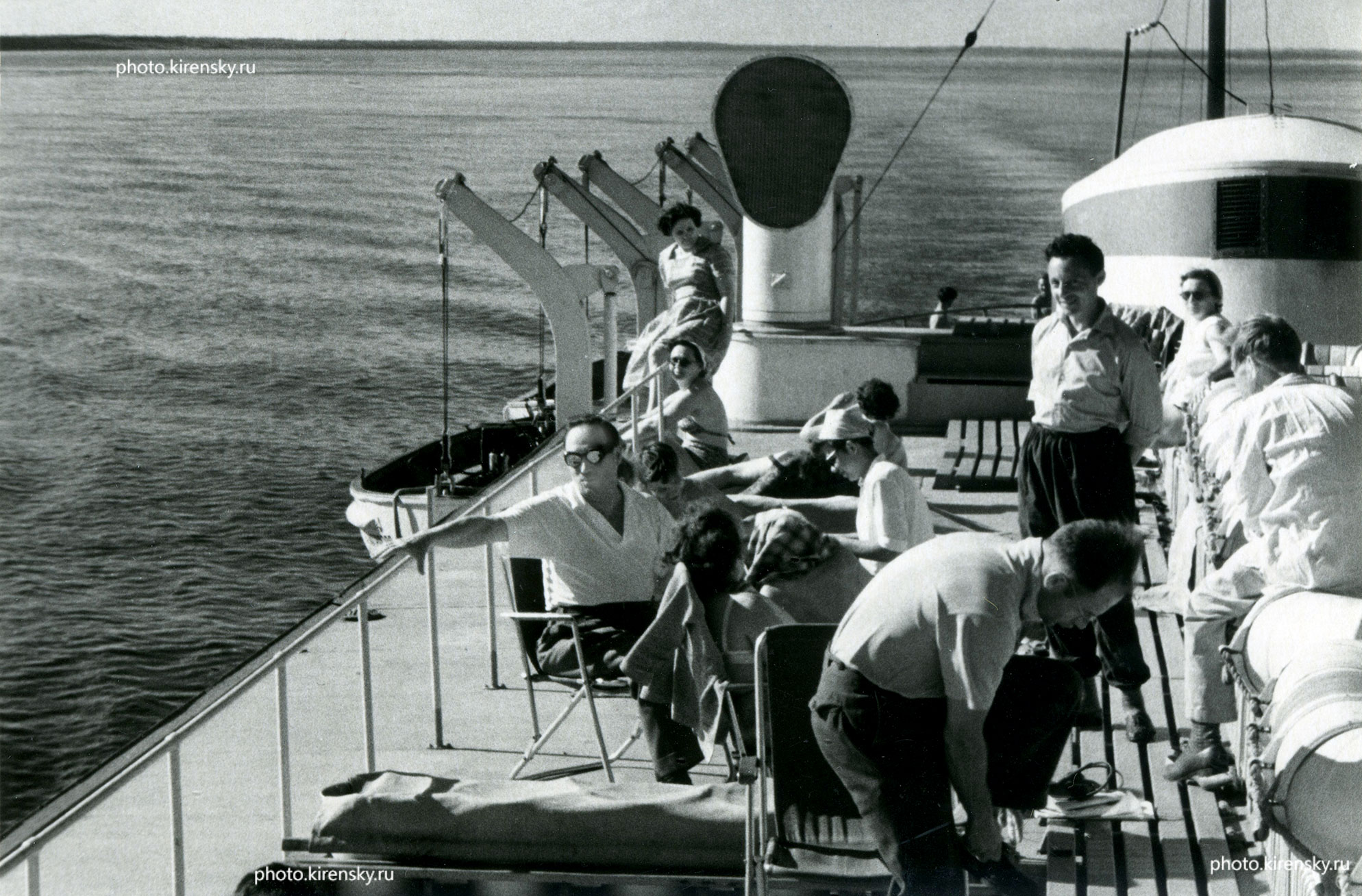 Л.В. Киренский на симпозиуме по вопросам ферро- и антиферромагнетизма, организованном Институтом физики Сибирского отделения Академии наук СССР (ИФ СО АН СССР) на теплоходе «А. Матросов», рейс Красноярск-Дудинка- Красноярск в 1962 году. Леонид Васильевич в очках.