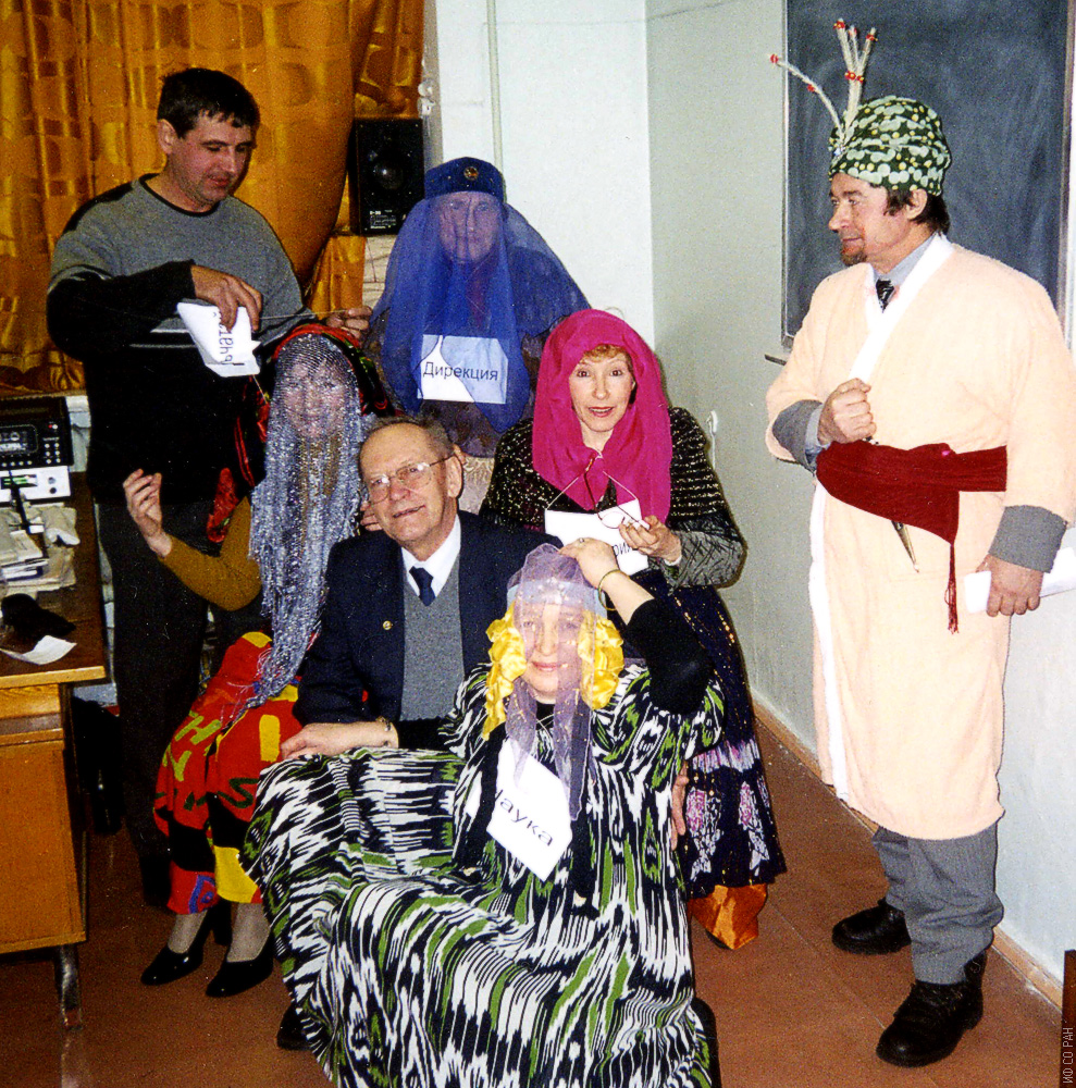 10 января 2001 года. Академику К.С. Александрову, директору и заведующему лабораторией кристаллофизики Института физики им. Л.В. Киренского Сибирского отделения Российской академии наук исполнилось 70 лет. Сотрудники лаборатории поздравляют юбиляра. Сидят слева направо: Бовина А.Ф., Александров К.С., Давыдова Т.Н., Мельникова С.В. Стоят (слева направо): Шолохов С.В., Гранкина В.А., Воронов В.Н. Красноярск.