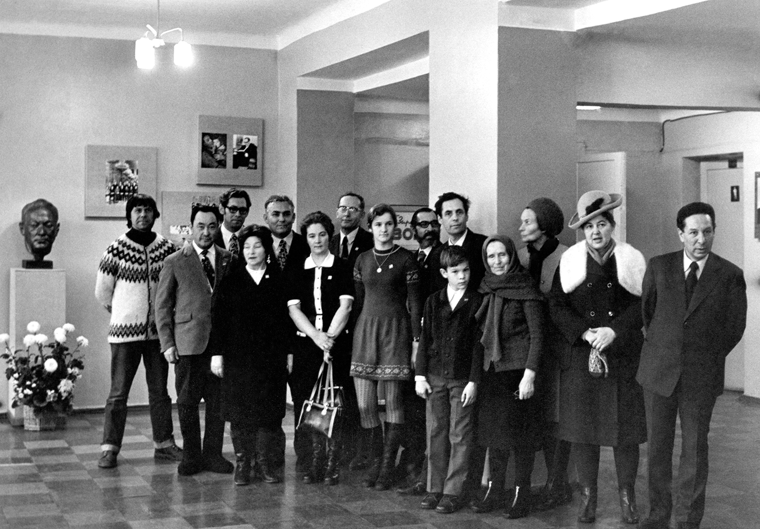 3 ноября 1970 года отмечалась годовщина кончины организатора и первого директора Института физики Сибирского отделения Академии наук СССР академика Л.В. Киренского. В первом ряду (слева направо): Аннаев Р.Г. - академик Туркменской АН ССР, друг Леонида Васильевича со студенческих лет, Киренская З.Я - супруга Леонида Васильевича, Татьяна Овчинникова – дочь Киренских, Ирина – внучка Киренских, Юрий – внук Киренских, Петухова Г.В.– старшая сестра Леонида Васильевича, Гительзон В.Г., Лундин А.Г. Во втором ряду (слева направо): Силис Н.А. – скульптор, один из авторов памятника Киренскому, Якубайлик Э.К., Терсков И.А., Александров К.С., Соколов Л.В. – архитектор, один из участников создания памятника Киренскому, Гительзон И.И., Ветер В.В. – ученица Киренского (работала в Дальне-Восточном государственном университете, по ее инициативе на физфаке университета была открыта кафедра физики твердого тела). Снимок сделан в холле Института физики. Красноярск.