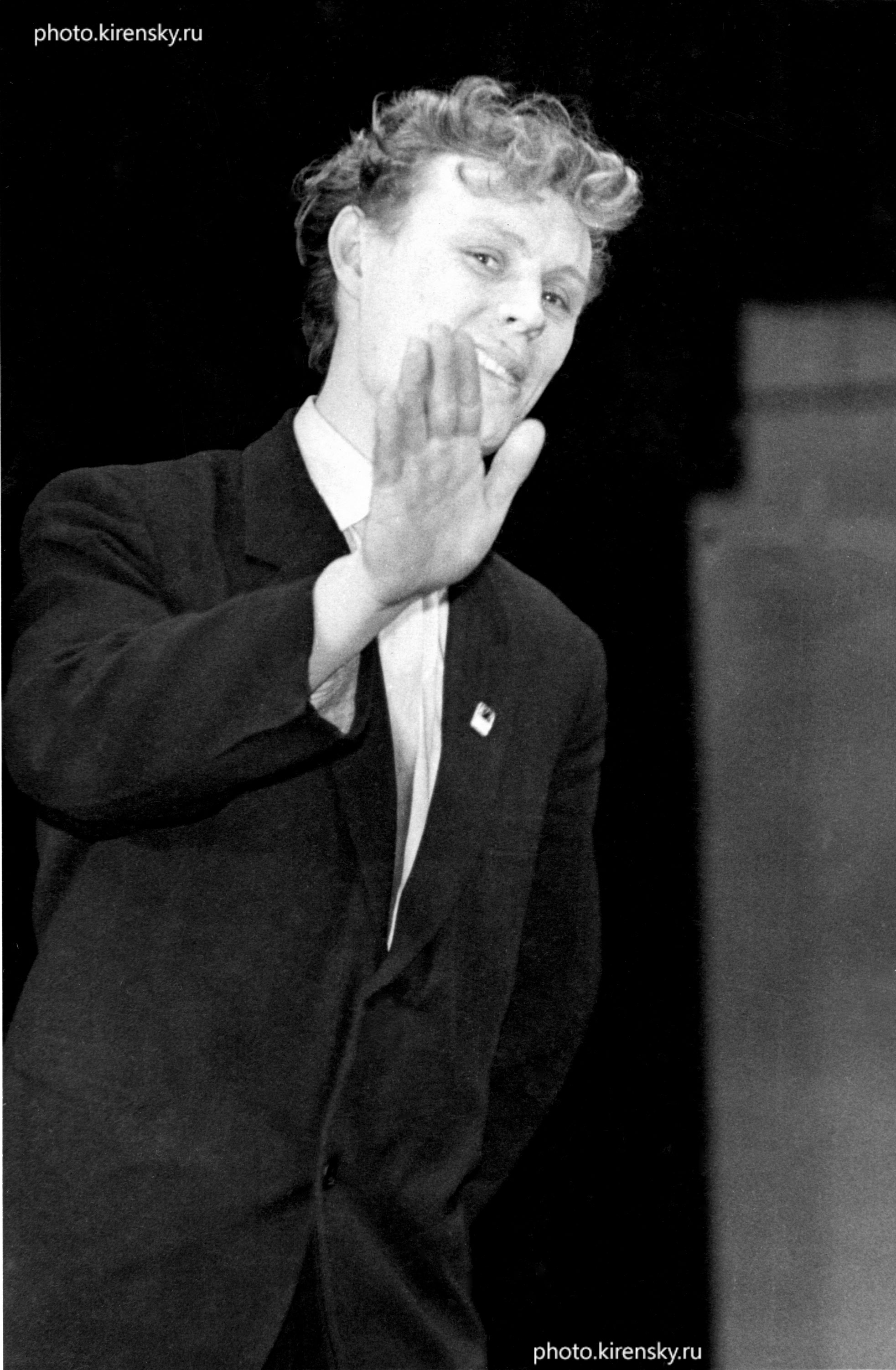 Борис Хрусталев, студент 5-го курса физико-математического факультета Красноярского государственного педагогического института, участник художественной самодеятельности института, на сцене во время конкурса студенческих художественных коллективов высших учебных заведений Красноярска. 1961 год.