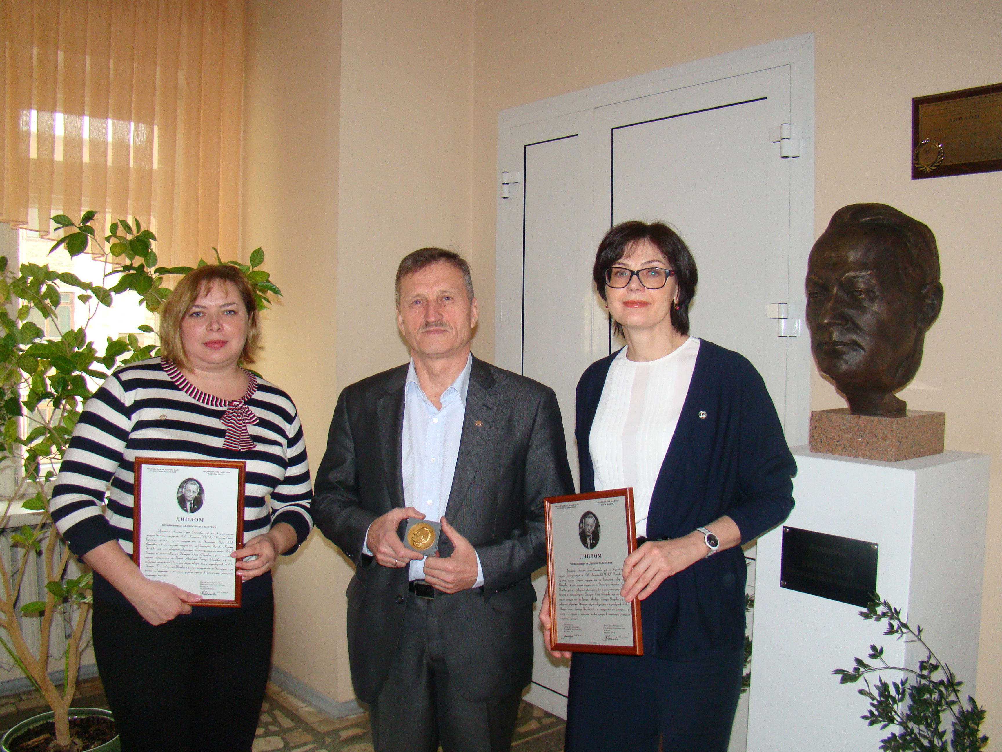 Сотрудники Института физики им. Л.В. Киренского Сибирского отделения Российской академии наук (ИФ СО РАН), удостоенные в 2015 году премии имени академика В.А. Коптюга за работу «Электронные и магнитные фазовые переходы в катион-анион замещенных халькогенидах марганца», слева направо: к.ф.-м.н. О.Б. Романова, профессор С.С. Аплеснин (руководитель), к.ф.-м.н. Л.В. Удод . Г. Красноярск.