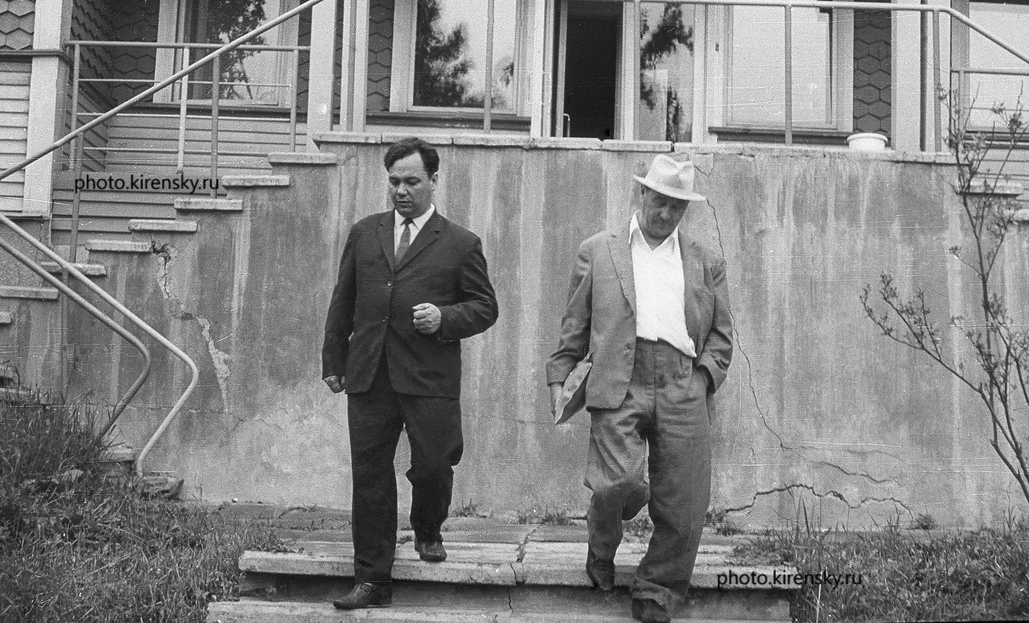 1968 год. Академик Киренский Л.В., директор Института физики СО АН СССР со своим учеником Буравихиным В.А. (слева), заведующим проблемной лабораторией по магнетизму Иркутского пединститута во время работы Международного симпозиума по физике магнитных пленок. Симпозиум подготовлен Институтом физики совместно с проблемной лабораторией по магнетизму Иркутского пединститута. Он был проведен в Иркутске, поскольку Красноярск в то время был закрытым городом.