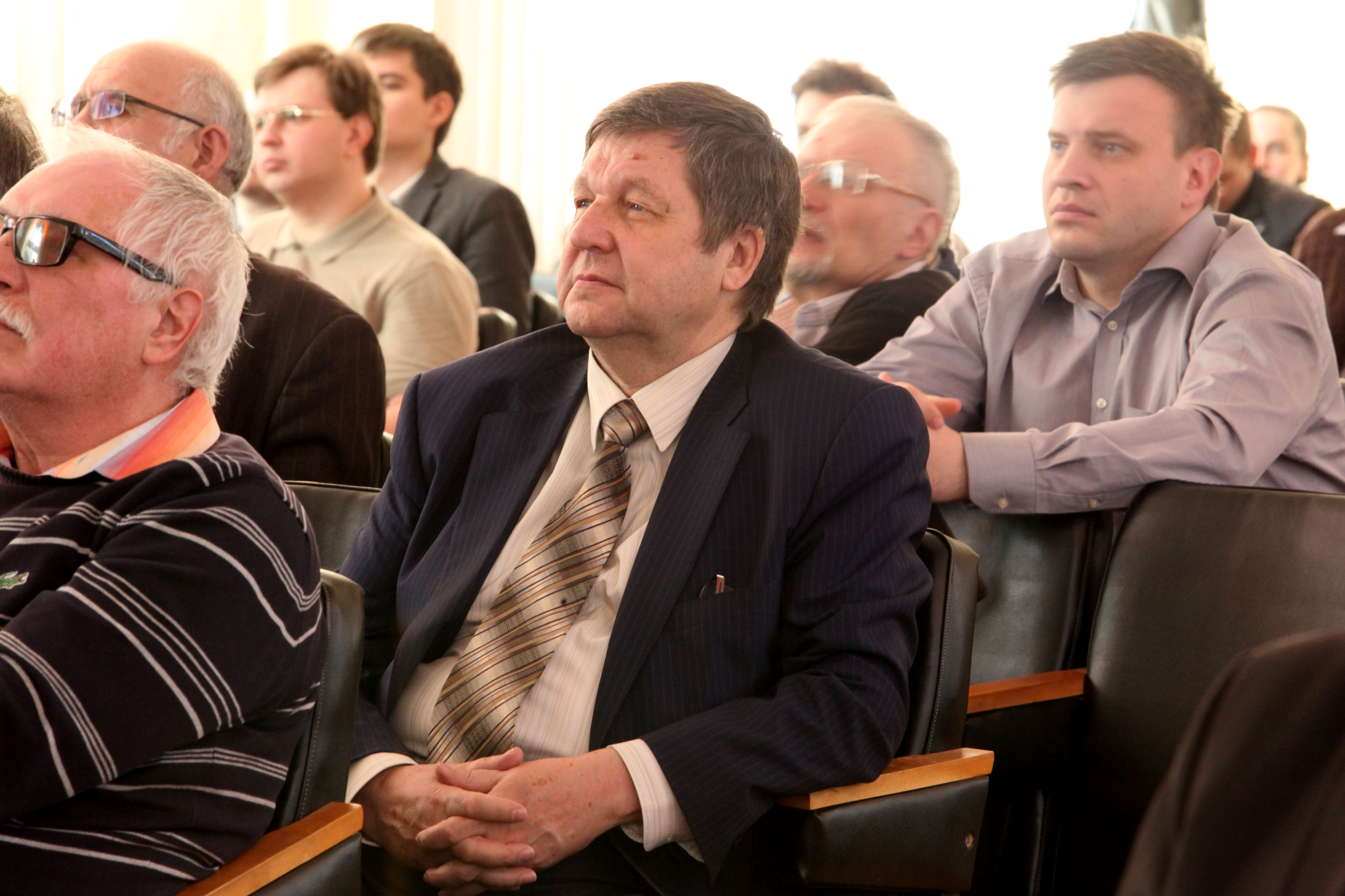 2015 год, 8 апреля. В конференц-зале Института физики им. Л.В. Киренского Сибирского отделения Российской академии наук (ИФ СО РАН) проходили научные чтения памяти академика Л.В. Киренского. На переднем плане директор Института вычислительного моделирования СО РАН, член-корреспондент РАН Владимир Викторович Шайдуров. За ним, старший научный сотрудник лаборатории физики магнитных явлений Ф.Н. Томилин. Красноярск.
