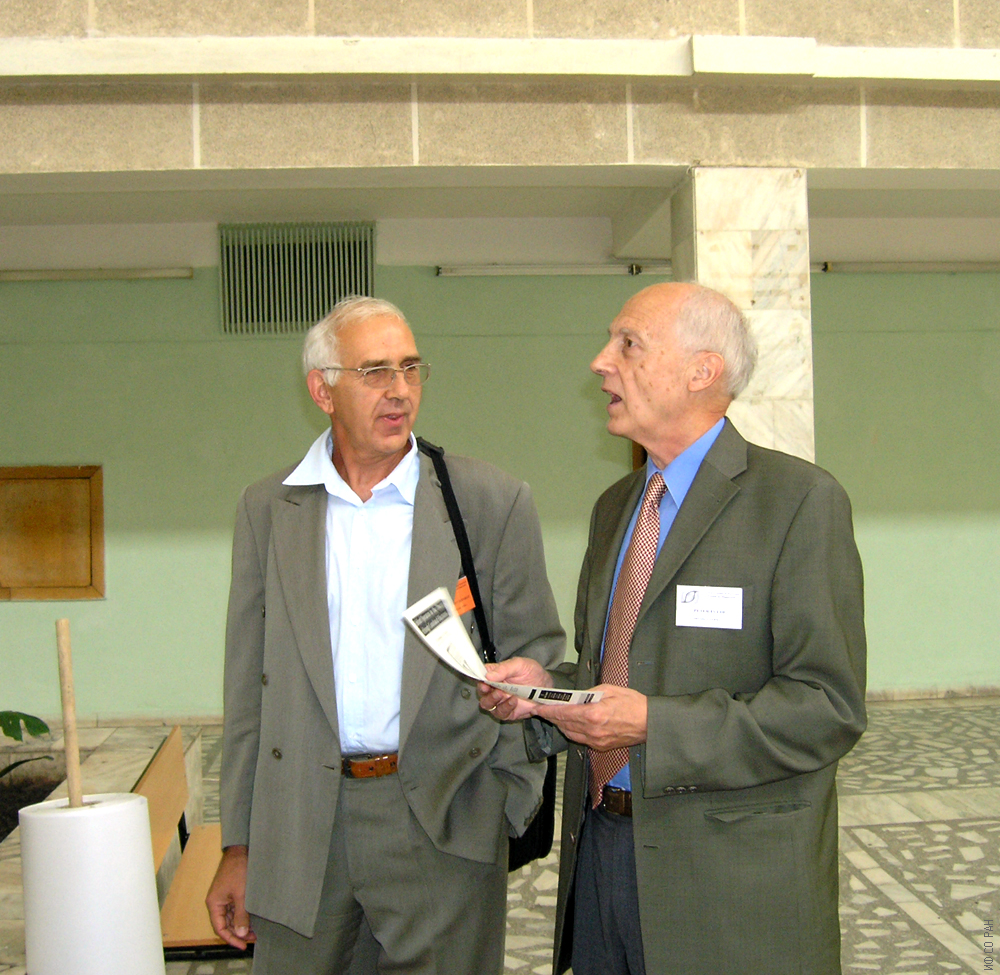 Овчинников С.Г. (слева), заместитель директора по научной работе, заведующий лабораторией физики магнитных явлений Института физики им. Л.В. Киренского Сибирского отделения Российской академии наук (ИФ СО РАН), и Питер Фулде, директор института Макса Планка физики комплексных систем г. Дрезден (Германия), на Евро-Азиатском симпозиуме «Прогресс в магнетизме» (ЕASTMAG-2004), Красноярск, август 2004 год.
