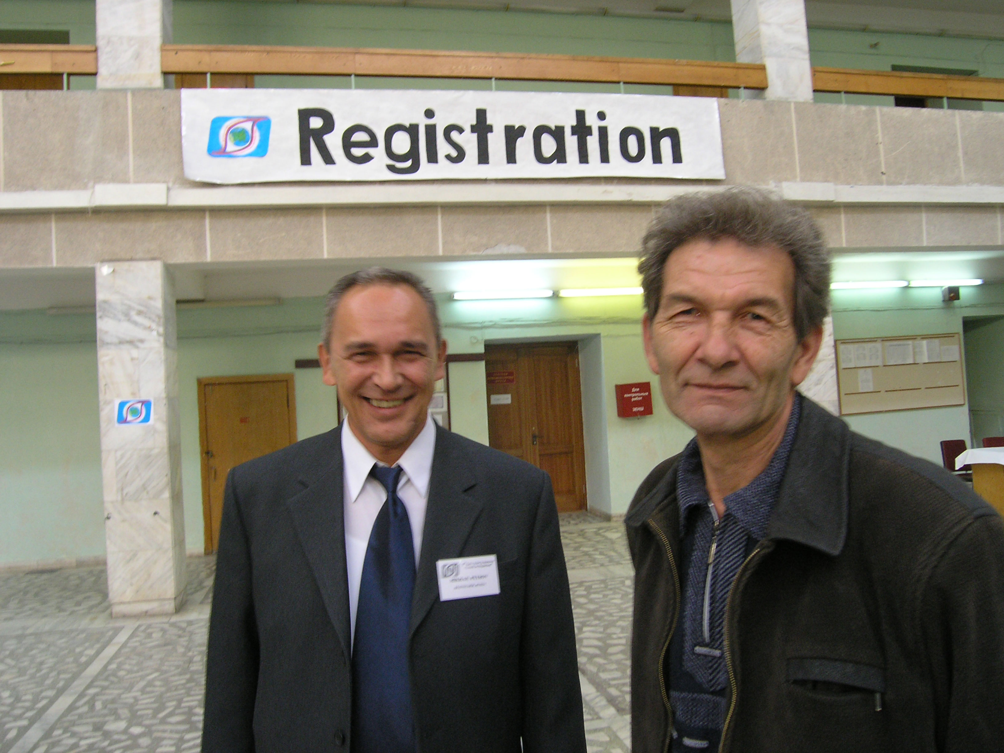 Сотрудники Института физики им. Л.В. Киренского Сибирского отделения Российской академии наук (ИФ СО РАН) Петров М.И. (слева) и Баюков О.А. на Евро-Азиатском симпозиуме «Прогресс в магнетизме» (ЕASTMAG-2004), Красноярск, август 2004 года.