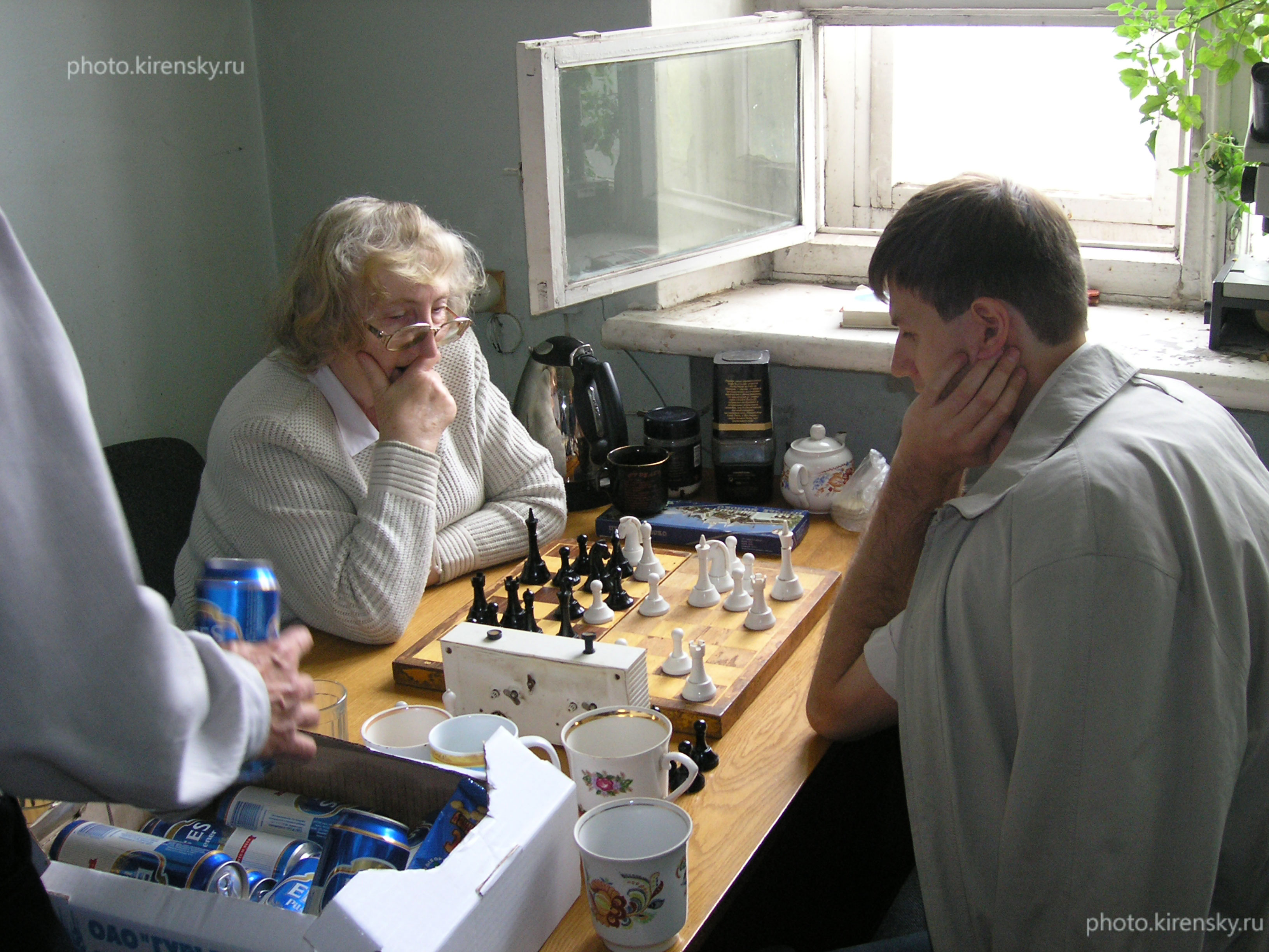 2004 год. Шахматный турнир между сотрудниками Института физики им. Л.В. Киренского Сибирского отделения Российской академии наук (ИФ СО РАН). На снимке: старший научный сотрудник лаборатория резонансных свойств магнитоупорядоченных веществ Саблина К.А. и старший научный сотрудник лаборатории радиоспектроскопии и спиновой электроники Еремин Е.В. Красноярск.