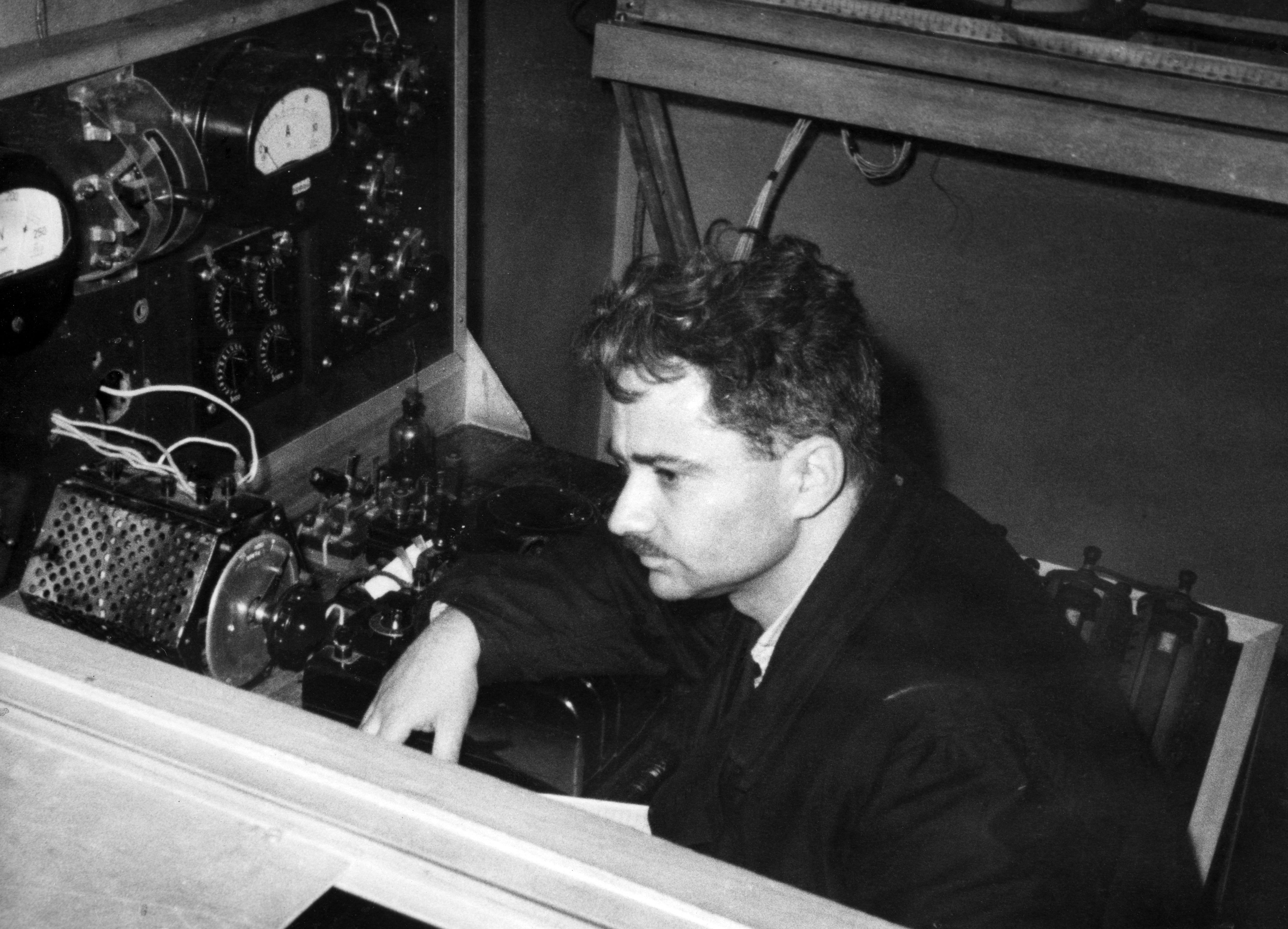 Ершов Радий Ефимович, занимался изучением новых принципов дефектоскопии в лаборатории физики магнитных явлений Института физики Сибирского отделения Академии наук СССР (ИФ СО АН СССР), фото 1962 года. Красноярск.