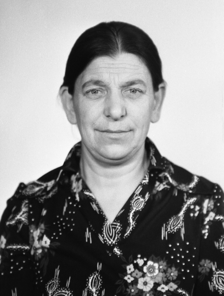 Поздеева Нина Григорьевна, 1934 г.р., образование неполное среднее, работает подсобной рабочей в Институте физики с 1977 г., фото 1984 г.