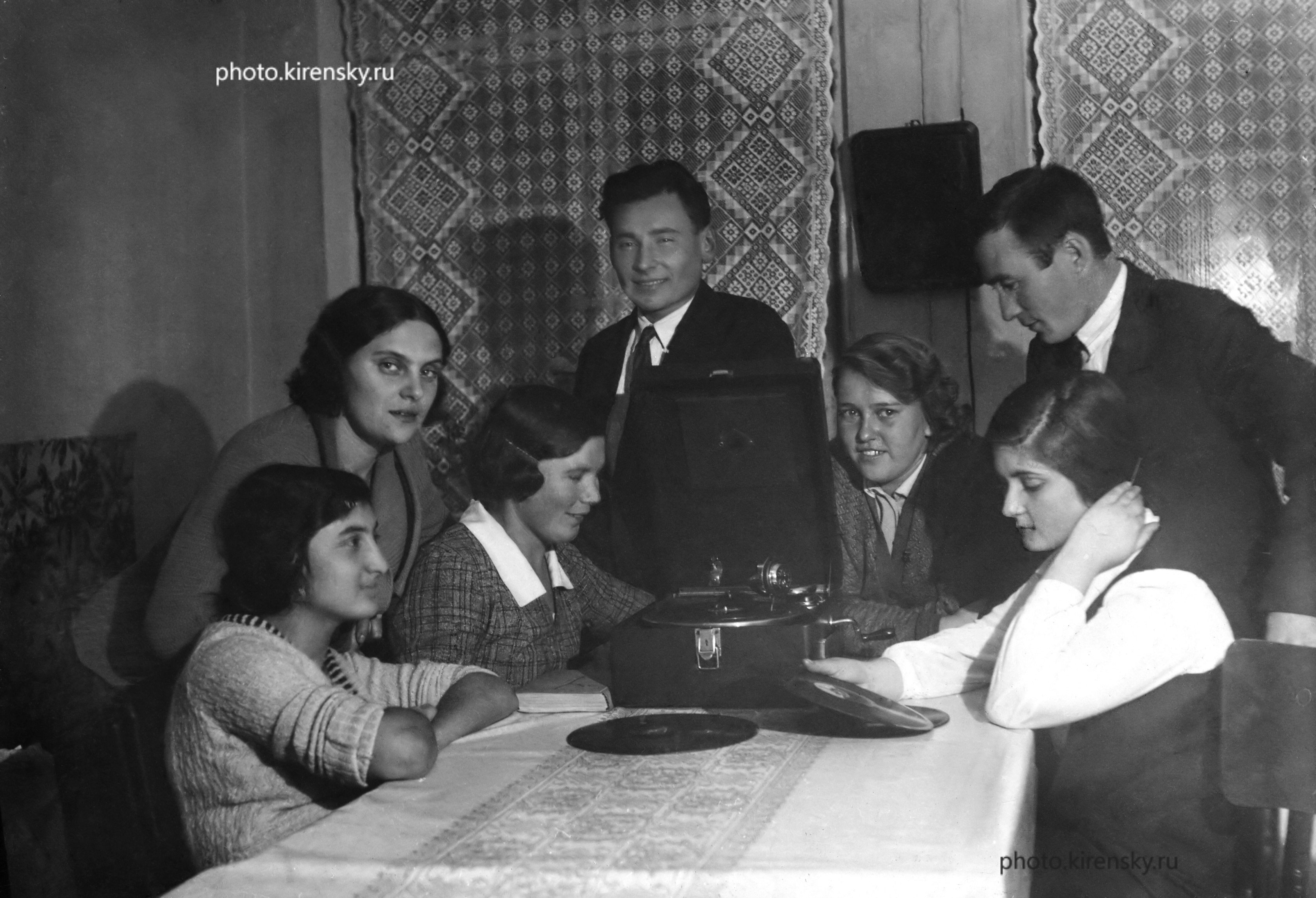 1936 год. Общежитие Московского государственного университета на Стромынке. На столе патефон. Крайняя справа З.Я. Киренская, за ней Л.В. Киренский.