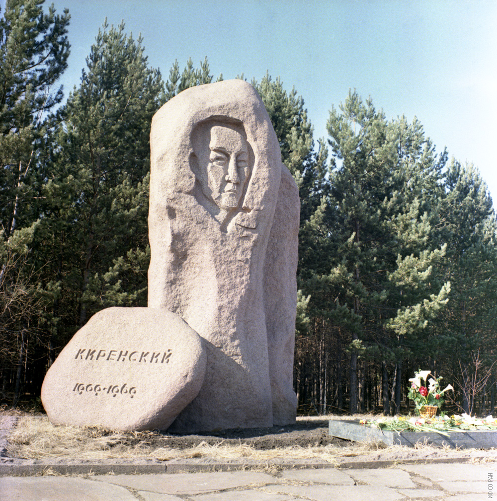 Академик Леонид Васильевич Киренский похоронен на территории организованного им Института физики им. Л.В. Киренского Сибирского отделения Российской академии наук (ИФ СО РАН) в Академгородке Красноярска. Памятник выполнили известные скульпторы В.С. Лемпорт, Н.А. Силис, Л.В. Соколов, из красноватого бутового камня, по форме напоминающего скалу "Перья" Красноярского Заповедника "Столбы" (3м х 2.5м). На могиле плита из синего лабрадора (80см х 100 см), установлен 4 ноября 1974 года.