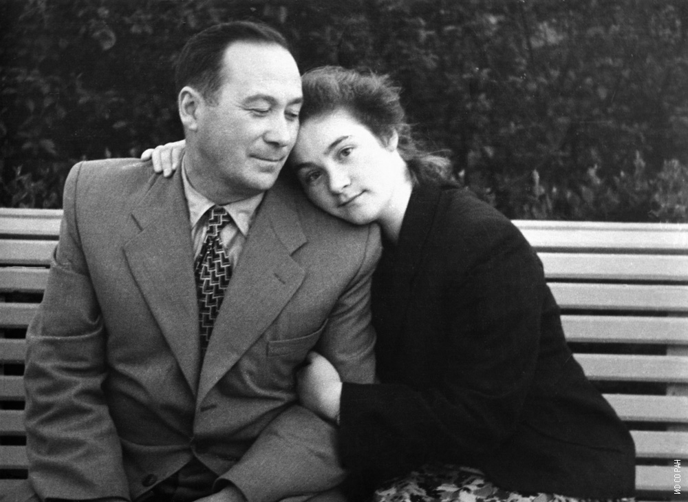 Академик Л.В. Киренский, организатор и первый директор Института физики Сибирского отделения Академии наук СССР (ИФ СО АН СССР), с дочерью Татьяной в 1956 году.