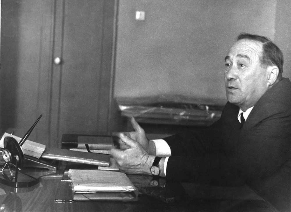 Академик Леонид Васильевич Киренский, организатор и первый директор Института физики Сибирского отделения Академии наук СССР (ИФ СО АН СССР), в своем рабочем кабинете. Фото 1968 года. Красноярск.