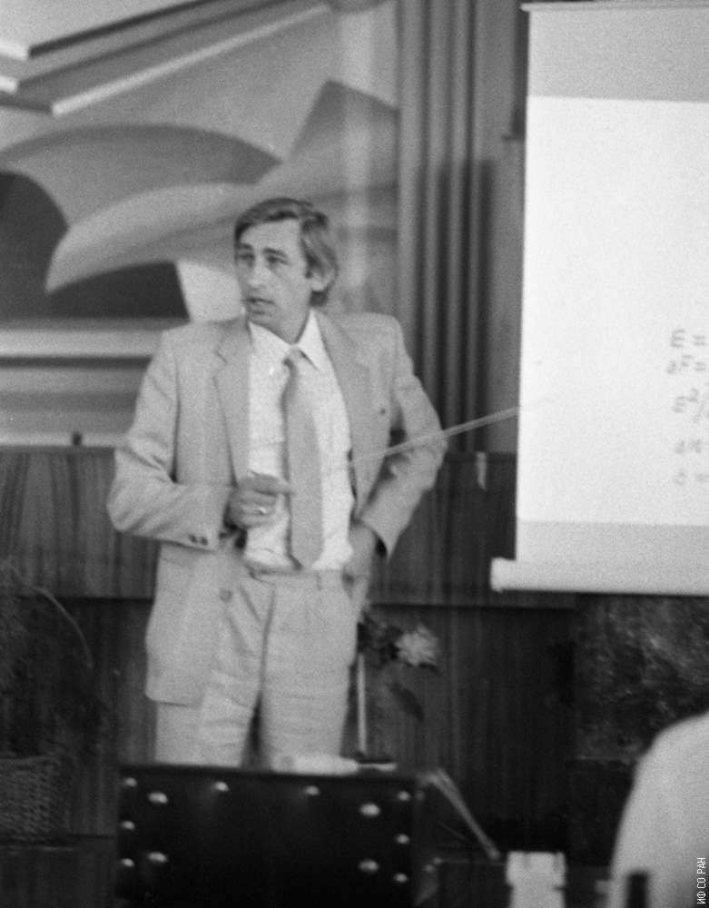 Бабкин Е.В., сотрудник лаборатория резонансных свойств магнитоупорядоченных веществ Института физики им. Л.В. Киренского Сибирского отделения АН СССР на семинаре по функциональной магнетоэлектронике в г. Дивногорске в 1986 году.