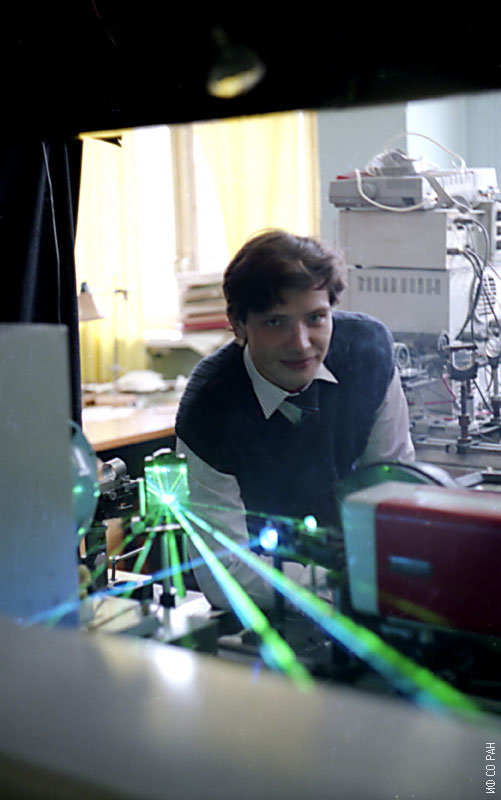 Баранник А.В., ведущий электроник лаборатории молекулярной спектроскопии Института физики им. Л.В. Киренского Сибирского отделения Российской академии наук (ИФ СОРАН), у лазерной установки. Снимок 1997 года. Красноярск.