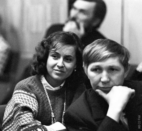 1986 год. Лабораторией резонансных свойств магнитоупорядоченных веществ Института физики им. Л.В. Киренского Сибирского отделения Академии наук СССР в г. Дивногорске (Красноярский край) был организован и проведен семинар по функциональной магнитоэлектронике. На снимке одно из пленарных заседаний. В первом ряду (слева) ученый секретарь института Смокотин Э.М. Во втором ряду (третий слева) - Сандалов И.С., рядом - Овчинников С.Г. В последнем ряду, крайний слева Бабкин Е.В. и Дрокина Т.В., сотрудники Института физики. Дивногорск.