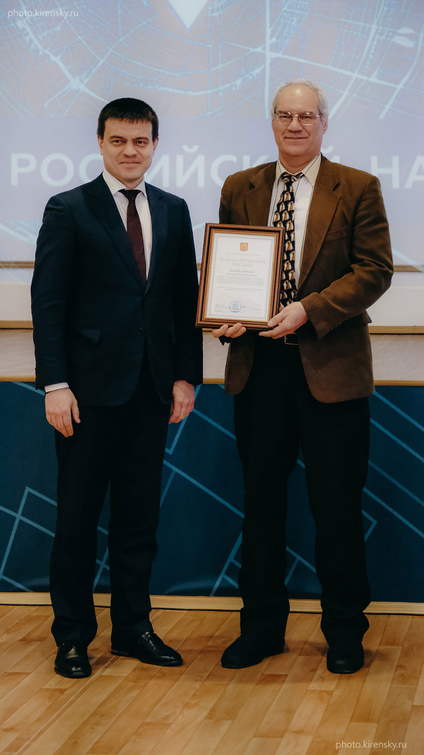 Февраль 2025 года. В Красноярском научном центре Сибирского отделения Российской академии наук (СО РАН) прошло торжественное расширенное заседание учёного Совета, посвящённое Дню российской науки. В мероприятии приняли участие ведущие учёные и исследователи научных институтов Красноярского научного центра, представители вузовского сообщества и государственных структур. В ходе заседания были подведены итоги научной деятельности центра за прошедший год, обсуждены ключевые достижения и планы на будущее. Губернатор Красноярского края Михаил Михайлович Котюков вручил сотрудникам центра Почетные грамоты и Благодарственные письма за вклад в развитие науки и технологий, а также за выдающиеся достижения в научной и образовательной деятельности. Награды стали признанием усилий учёных, участвующих в реализации крупных научных проектов и внедрении инноваций. После вручения Благодарственного письма фото на память: М.М. Котюков (слева) и Д.М. Дзебисашвили, доктор физико-математических наук, заведующий лабораторией теоретической физики Института физики им. Л.В. Киренского Сибирского отделения Российской академии наук.