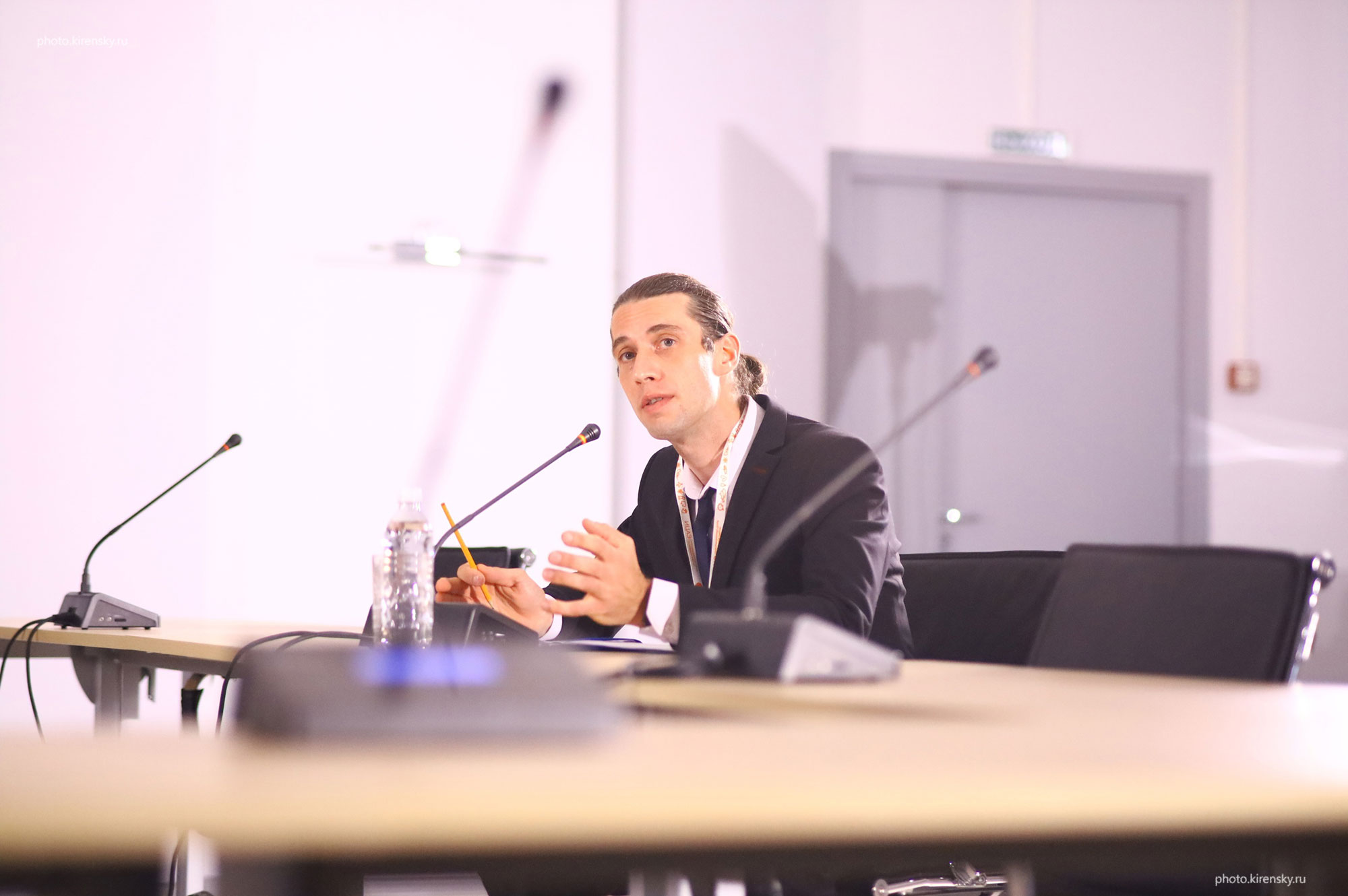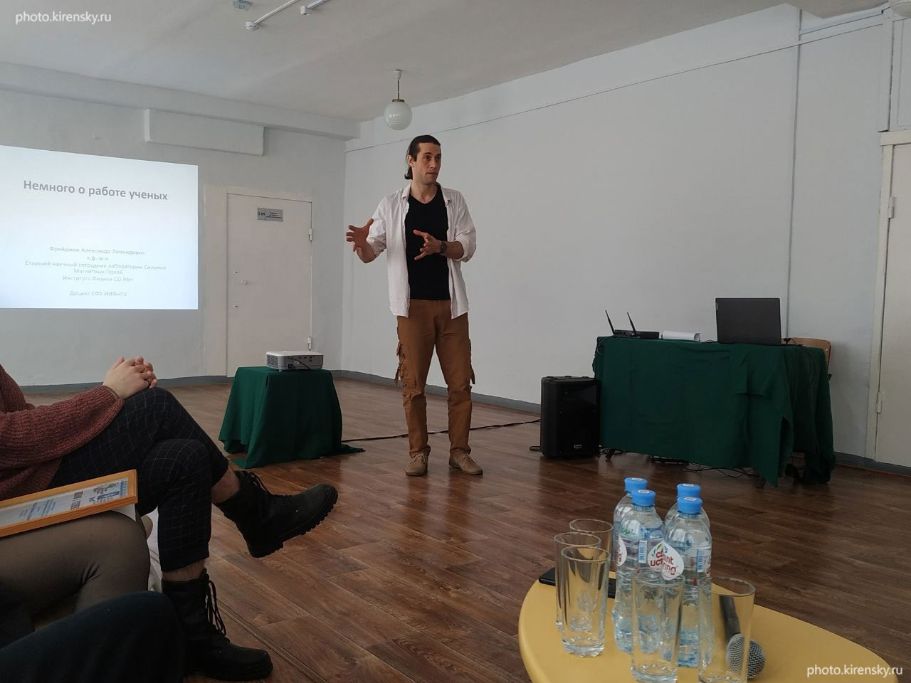Фрейдман Александр Леонидович, младший научный сотрудник лаборатории сильных магнитных полей Института физики им. Л.В. Киренского Сибирского отделения Российской академии наук с докладом на семинаре лаборатории. Снимок 2012 года.