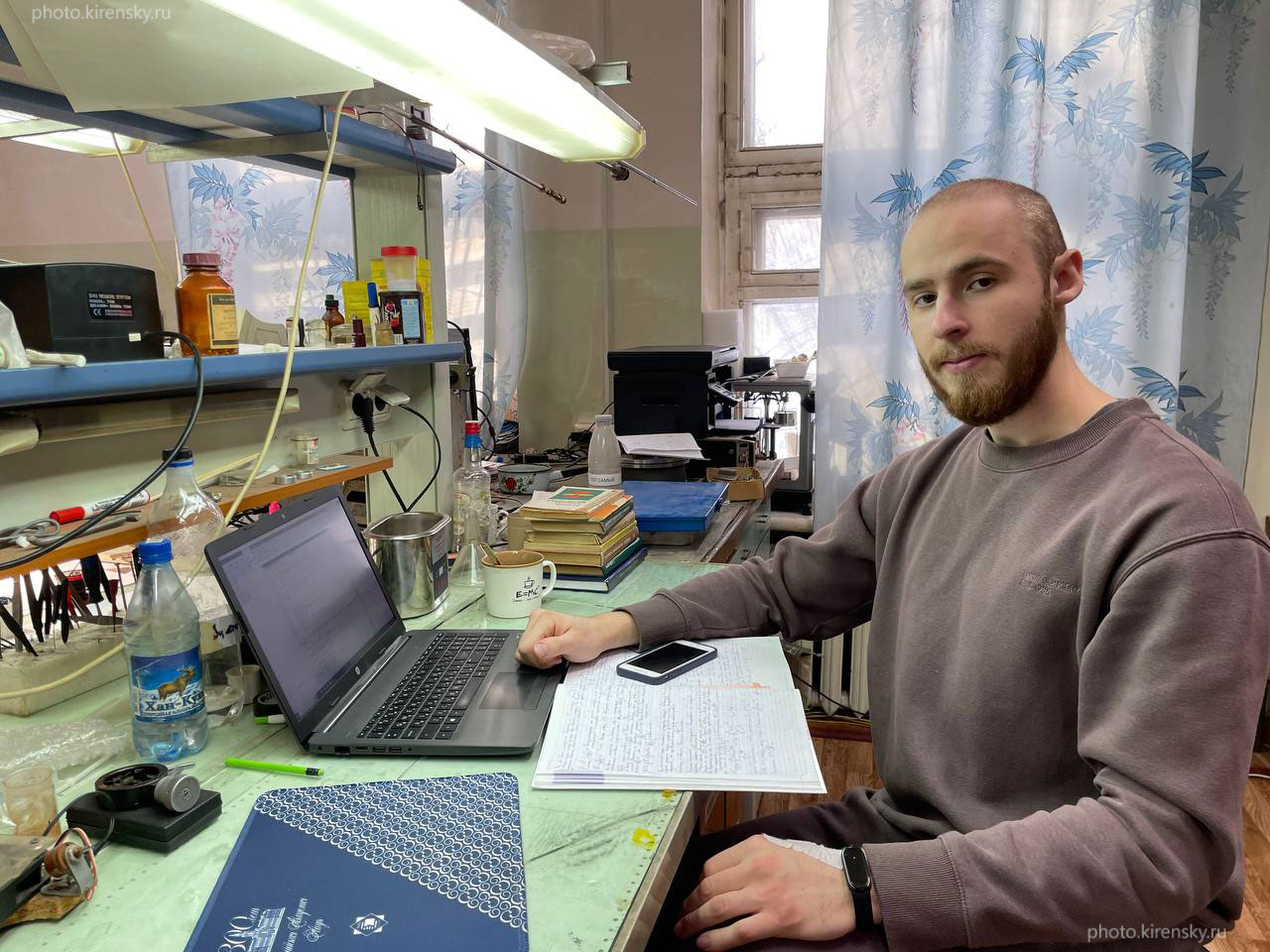 Хороший Иван Николаевич, младший научный сотрудник лаборатории сильных магнитных полей Института физики им. Л.В. Киренского Сибирского отделения Российской академии наук. Снимок в лаборатории 2025 год.