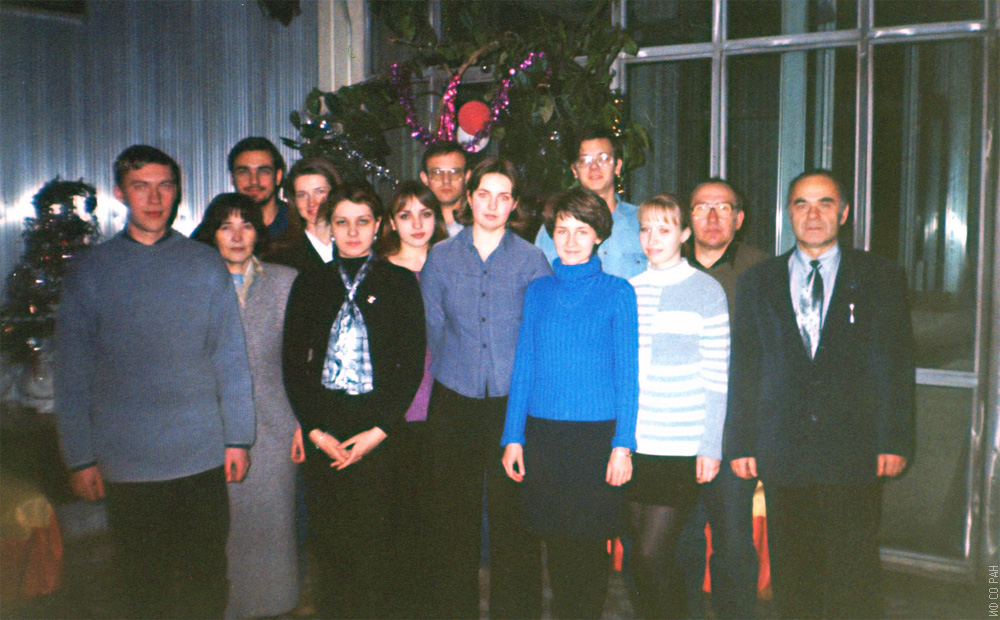 Декабрь 2004 года. Сотрудники лаборатории аналитических методов исследования вещества Института физики им. Л.В. Киренского Сибирского отделения Российской академии наук (ИФ СО РАН). Слева направо: Лопатин В.А., Исакова В.Г., Глущенко Г.А., Мальцева С.С., Внукова Н.Г., Пьянзина Т.С., Марачевский А.В., Литяева Н.С., Булина Н.В., Новиков П.В., Чернова А.Г. - студентка КГУ, Чурилов Г.Н. Красноярск.