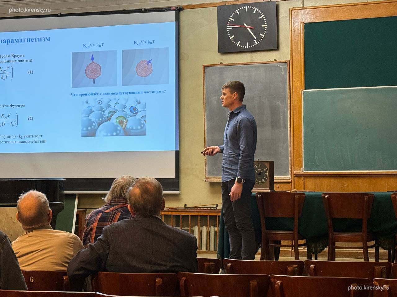 Князев Юрий Владимирович, старший научный сотрудник лаборатории резонансных свойств магнитоупорядоченных веществ Института физики им. Л.В. Киренского Сибирского отделения Российской академии наук в конференц-зале института. 2021 год.
