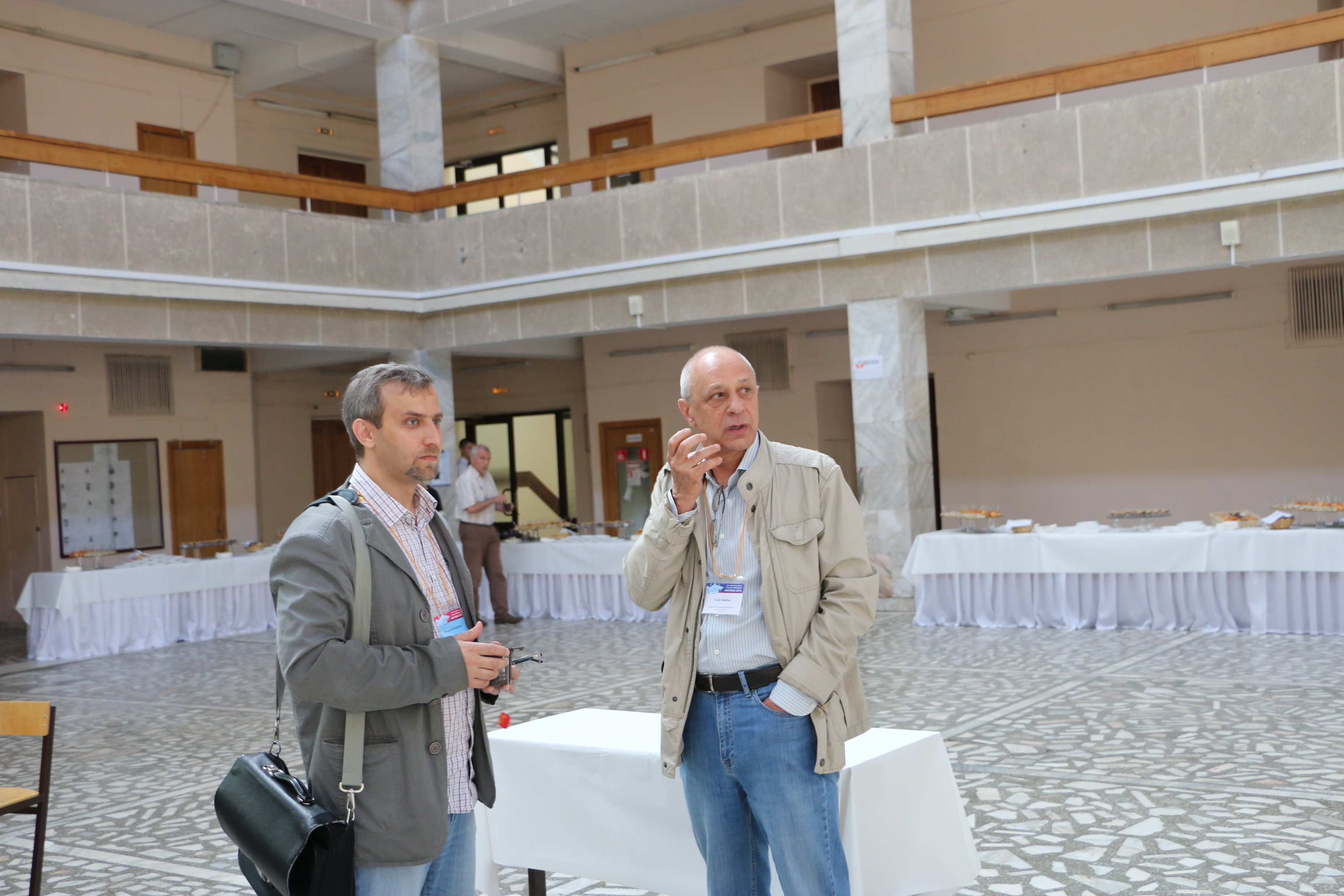 Комогорцев С. В. (слева), кандидат физико-математических наук старший научный сотрудник лаборатории физики магнитных пленок Института физики им. Л.В. Киренского Сибирского отделения Российской академии наук (ИФ СО РАН), на Евро-Азиатском симпозиуме «Прогресс в магнетизме» (ЕASTMAG-2016), подготовленном и проведеномм в Красноярскев в августе 2016 года. Симпозиум проводился в конгресс-холле Сибирского федерального университета (СФУ).
