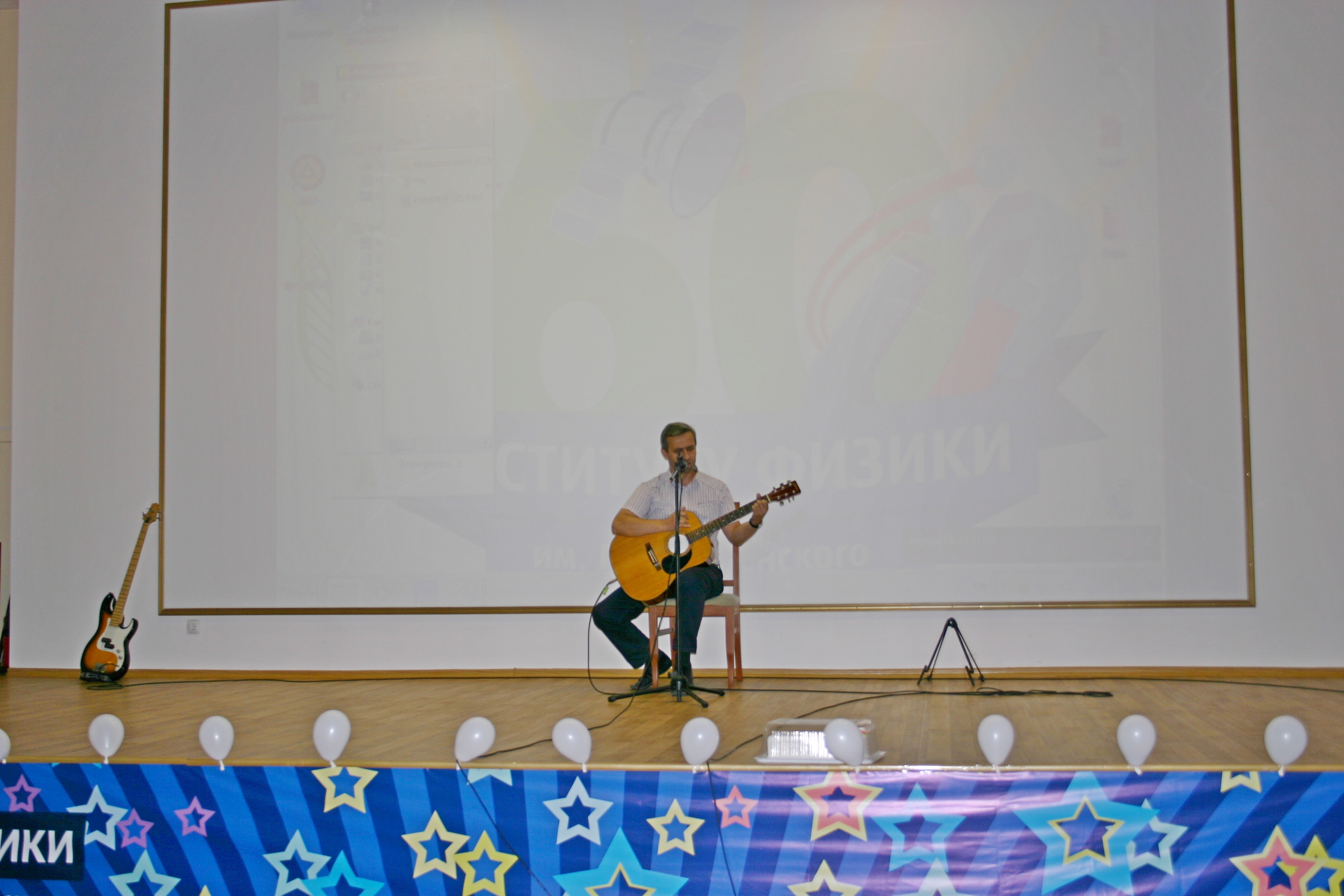 12 октября 2016 года. На празднике в честь 60-ия Института физики им. Л.В. Киренского Сибирского отделения Российской академии наук (ИФ СО РАН). Участник художественной самодеятельности праздничного концерта Сергей Викторович Комогорцев, старший научный сотрудник лаборатории физики магнитных пленок. Красноярск.