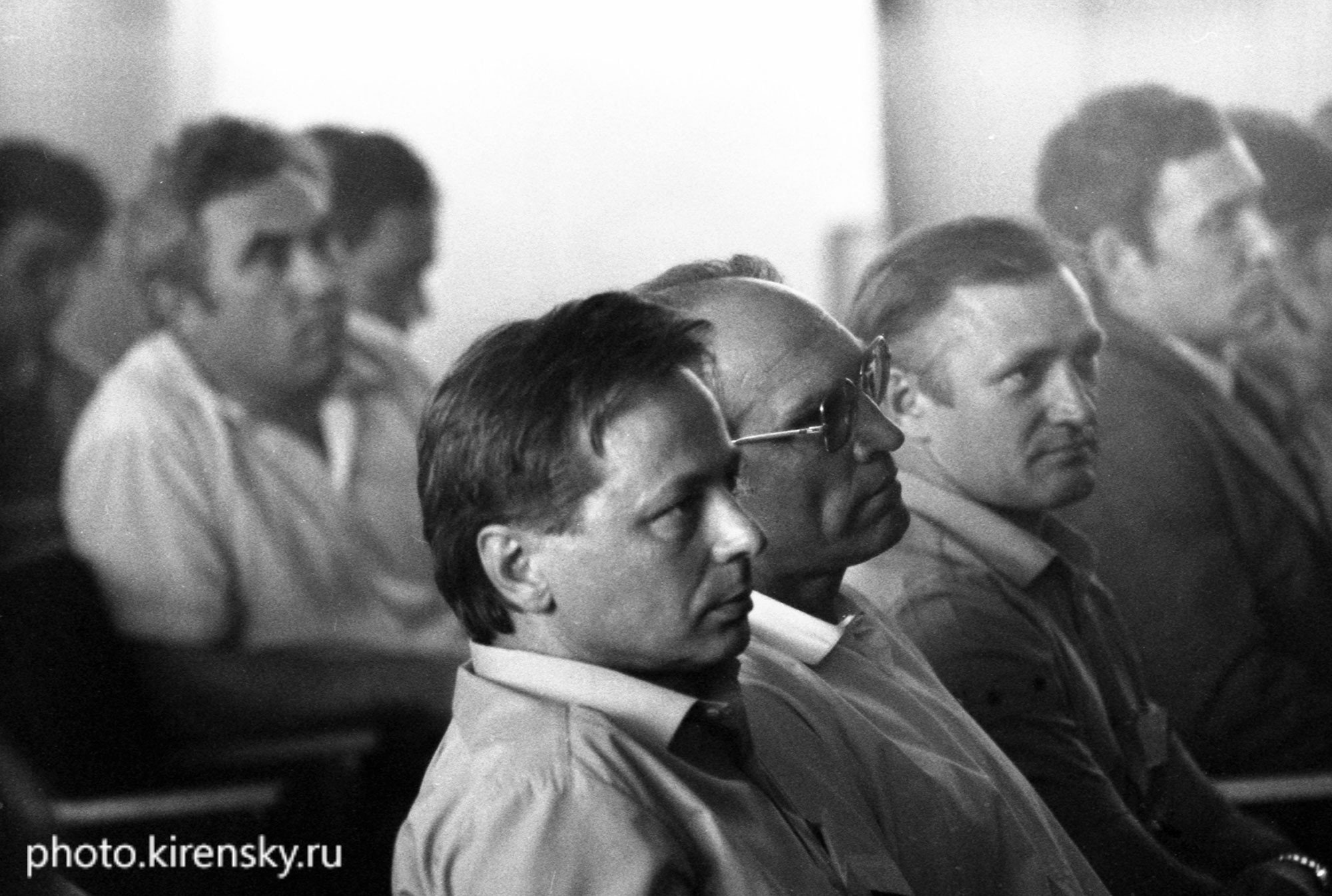 1986 год. Сотрудниками лаборатории резонансных свойств магнитоупорядоченных веществ Института физики им. Л.В. Киренского Сибирского отделения Академии наук СССР в городе Дивногорске (Красноярский край) была организована и проведена Всесоюзная конференция по аморфному магнетизму. На снимке участники конференции: в первом ряду слева направо: Петраковский Г.А., ? , Владимиров В.М. В следующем ряду Кононов В.П.