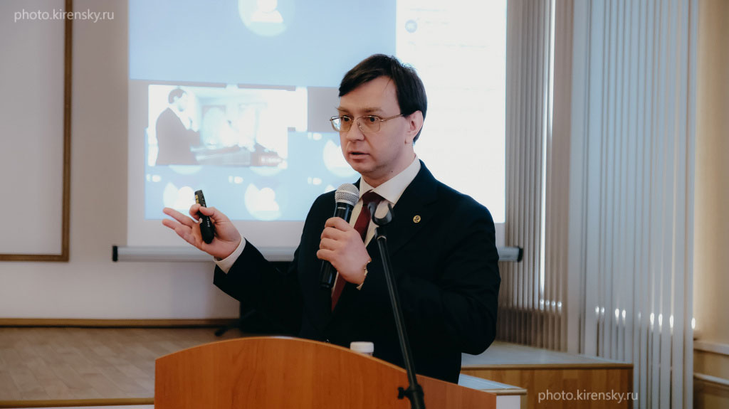 Коршунов Максим Михайлович, доктор физико-математических наук, ведущий научный сотрудник лаборатории физики магнитных явлений Института физики им. Л.В. Киренского Сибирского отделения Российской академии наук, на учёном Совете, посвященном годовщине организации Института физики. Фото 2021 года.
