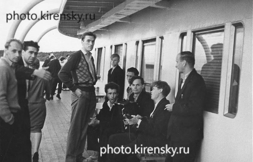 В июне 1973 года проходило III - ье совещание по биосинтезу и биофизических популяций на теплоходе «В. Чкалов», рейс: Красноярск – Дудинка - Красноярск по Енисею. Совещание было организовано и проведено отделом биофизики Института физики Сибирского отделения Академии наук СССР (ИФ СО АН СССР) (СО АН СССР с 1991 года СО РАН), слева направо: Р.П. Смолин, Д.А. Лаптей, Н.С. Чистяков. Крайний справа – М.К. Савченко.
