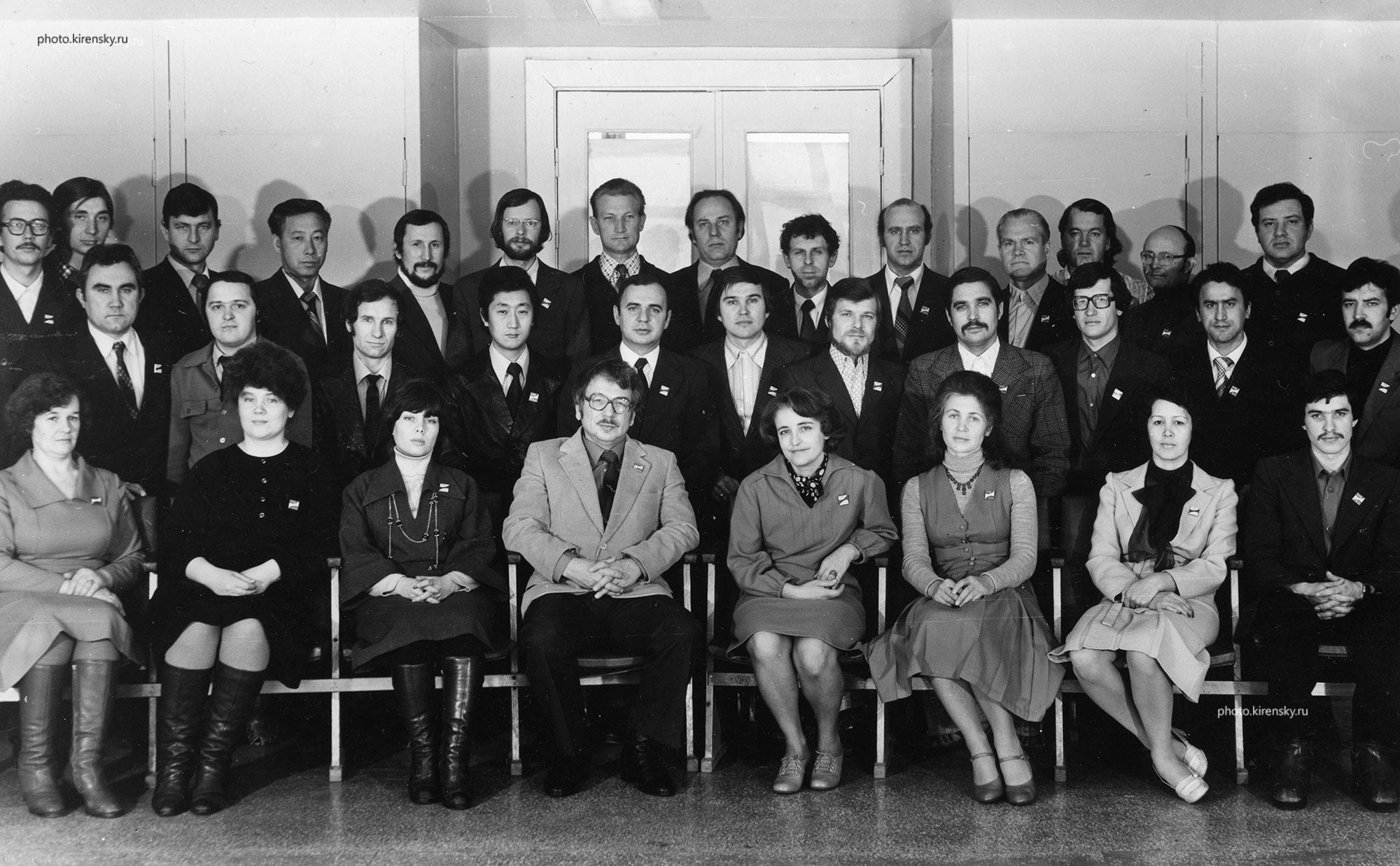 Лаборатория физики магнитных плёнок. Сидят, слева направо: Гоголева Л.М., Иванова Р.И., Буркова Л.В., Фролов Г.И.- заведующий лабораторией, Елманова В.А., Верхотурова Н.И., Лазарева Л.В., Кулинич С. Во втором ряду: Кононов В.П., Рузанов В., Яковчук В.Ю., Хван Д.У., Ерухимов М.Ш., Тюрнев В.В., Беляев Б.А., Владимиров А.Г., Бабицкий А.Н., Позняков А. В третьем ряду: Худяков А.Е., Трусов Ю.Н., Поляков В.В., Ким П.Д., Жигалов В.С., Вершинин В.В., Мальцев В.К., Польский А.И., Резуненко В.И., Чернов В.К., Кузнецов Н.Ф., Серёдкин В.А., Щербаков В.М., Глозман Е.А. Фото 1981 года. Института физики 25 лет.