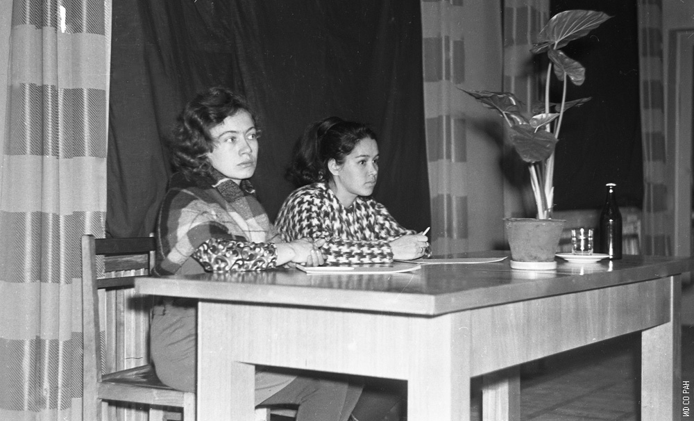 Института физики Сибирского отделения Академии наук СССР (ИФ СО АН СССР), стенографируют заседание специализированного Совета по защитам института, фото 1970 года.