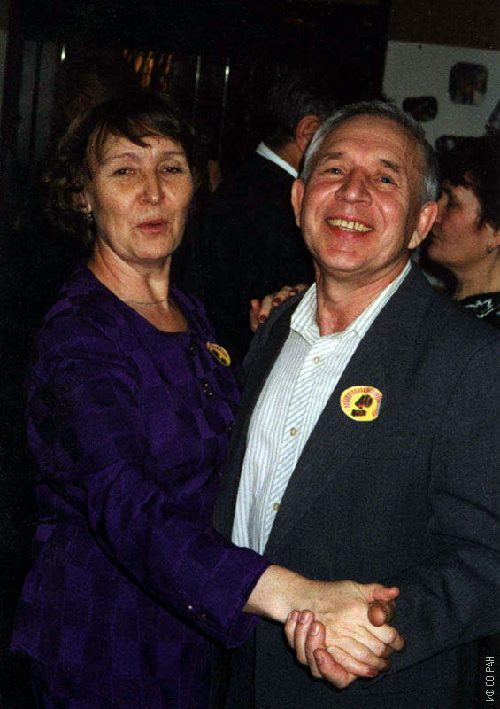 Мельникова С.В. и Трофимов В.Е. на праздновании 40-летия лаборатории кристаллофизики Института физики им. Л.В. Киренского Сибирского отделения Российской академии наук (ИФ СО РАН) в 1999 году. Красноярск. Академгородок.