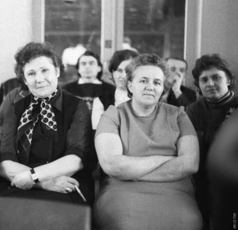 7 марта 1974 года в конференц-зале Институте физики им. Л.В. Киренского Сибирского отделения Академии наук СССР (ИФ СО АН СССР) прошло торжественное заседание накануне праздника - Международного женского дня 8 марта. На переднем плане сотрудницы бухгалтерии, слева направо: Машукова Полина Ивановна, Носевич Надежда Евстафьевна, Ковалькова Мария Андреевна. Красноярск.