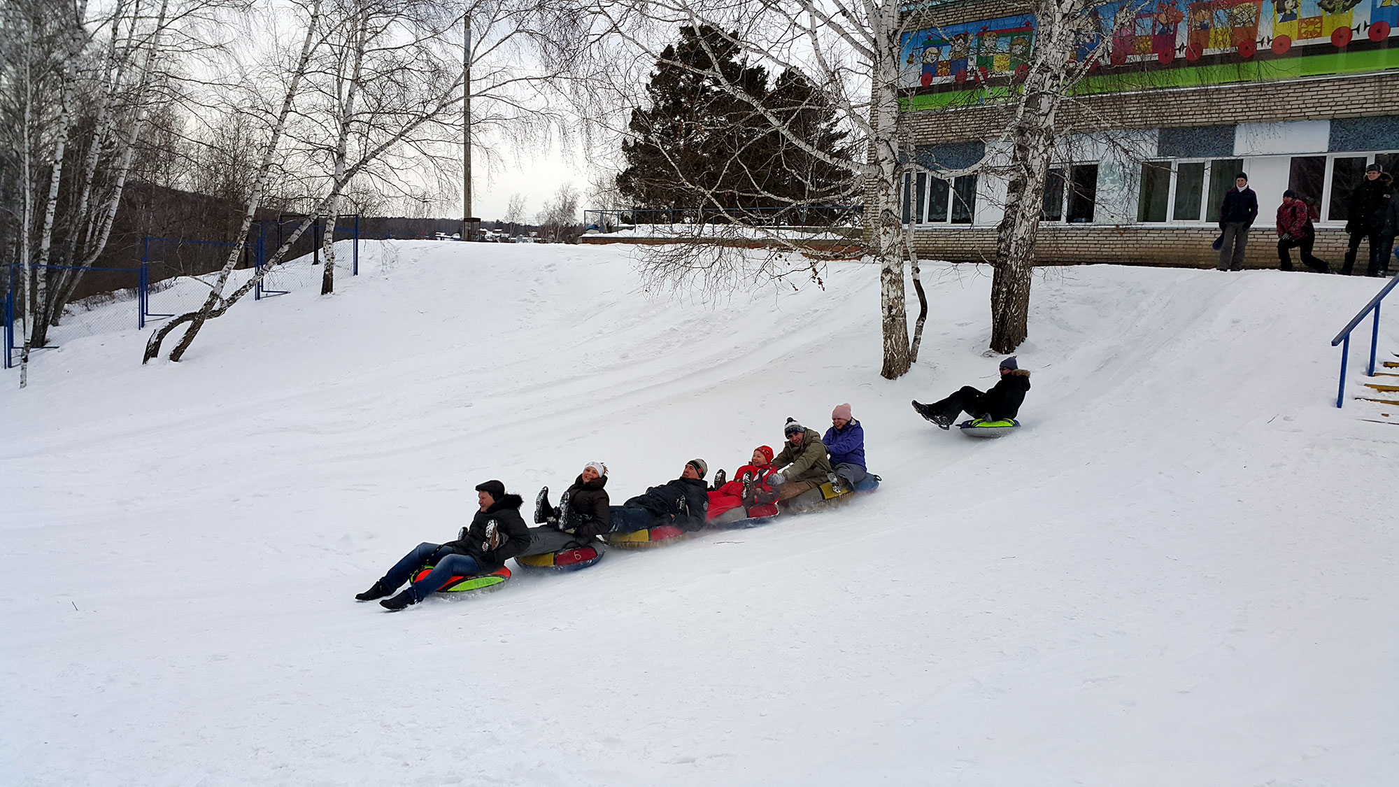 2016 год 23 февраля. Сотрудники лаборатории физики магнитных явлений (ФМЯ) Института физики им. Л.В. Киренского Сибирского отделения Российской академии наук отмечают праздник «День защитника Отечества». Катание на плюшках, первый – Федоров А.С., ведущий научный сотрудник; Яковлева Е.В., ведущий технолог; Овчинников С.Г., заведующий лабораторией ФМЯ; Бруштунова О.Н., лаборант; Лященко С.А, научный сотрудник; Иванова О.С., старший научный сотрудник; Петров Д.А,. научный сотрудник лаборатории.