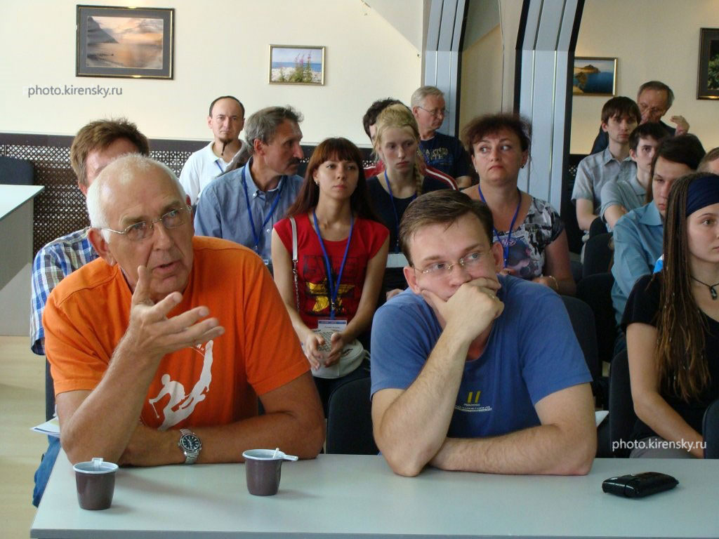 Овчинников Сергей Геннадьевич (слева) заведующий лабораторией физики магнитных явлений (ФМЯ) и Орлов Юрий Сергеевич, старший научный сотрудник лаборатории ФМЯ Института физики им. Л.В. Киренского Сибирского отделения Российской академии наук, на VI-ой Байкальской международной конференции "Магнитные материалы. Новые технологии" 19 - 23 августа 2014 года. Проходила в поселке Большое Голоустное.
