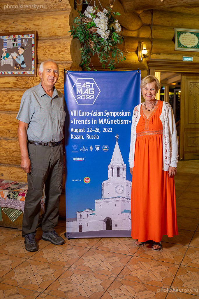 22-26 августа 2022 года в Казане проходил VIII Евро-азиатский симпозиум «Тенденции в магнетизме» EASTMAG-22. Овчинников Сергей Геннадьевич, доктор физико-математических наук, заведующий лабораторией физики магнитных явлений Института физики им. Л.В. Киренского Сибирского отделения Российской академии наук (ИФ СО РАН) с супругой являлись участниками симпозиума. Сергей Геннадьевич от Институт физики и делегат от Института леса и древесины СО РАН Тамара Михайловна Овчинникова. Фото на память. Казань.