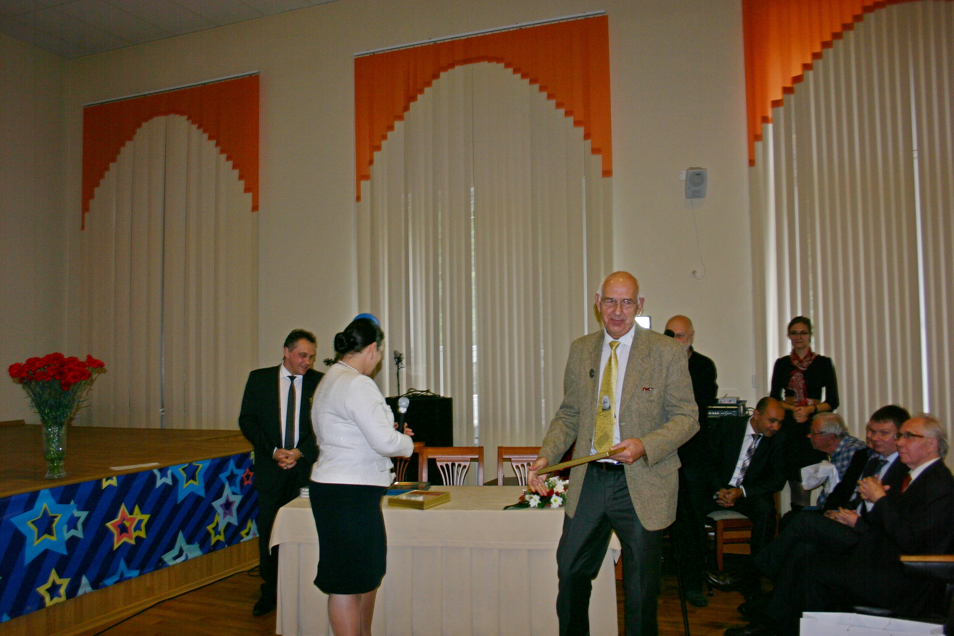 12 октября 2016 года. В конференц-зале Института физики им. Л.В. Киренского Сибирского отделения Российской академии наук (ИФ СО РАН) состоялось расширенное заседание ученого Совета, посвященное 60-ию образования института с участием сотрудников института, представителей администраций города и края, директоров предприятий-партнеров, директоров подразделений Федерального исследовательского центра Красноярского научного центра СО РАН и других гостей. Овчинников С. Г. , заместитель директора Института физики по научной работе, после вручения ему благодарственного письма губернатора Красноярского края.