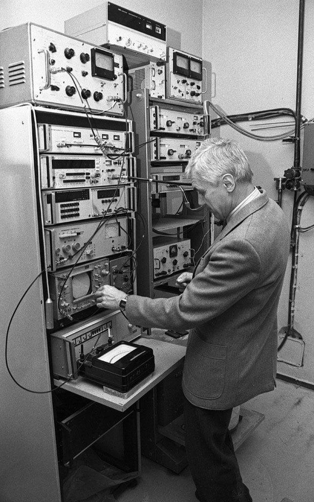 Панкрац Анатолий Иванович, старший научный сотрудник лаборатории резонансных свойств магнитоупорядоченных веществ Института физики им. Л.В. Киренского Сибирского отделения Академии наук СССР (ИФ СО АН СССР), проводит исследования магнитоупругих свойств антиферромагнетиков на спектрометре с импульсным магнитным полем. Фото 1989 года. Красноярск.